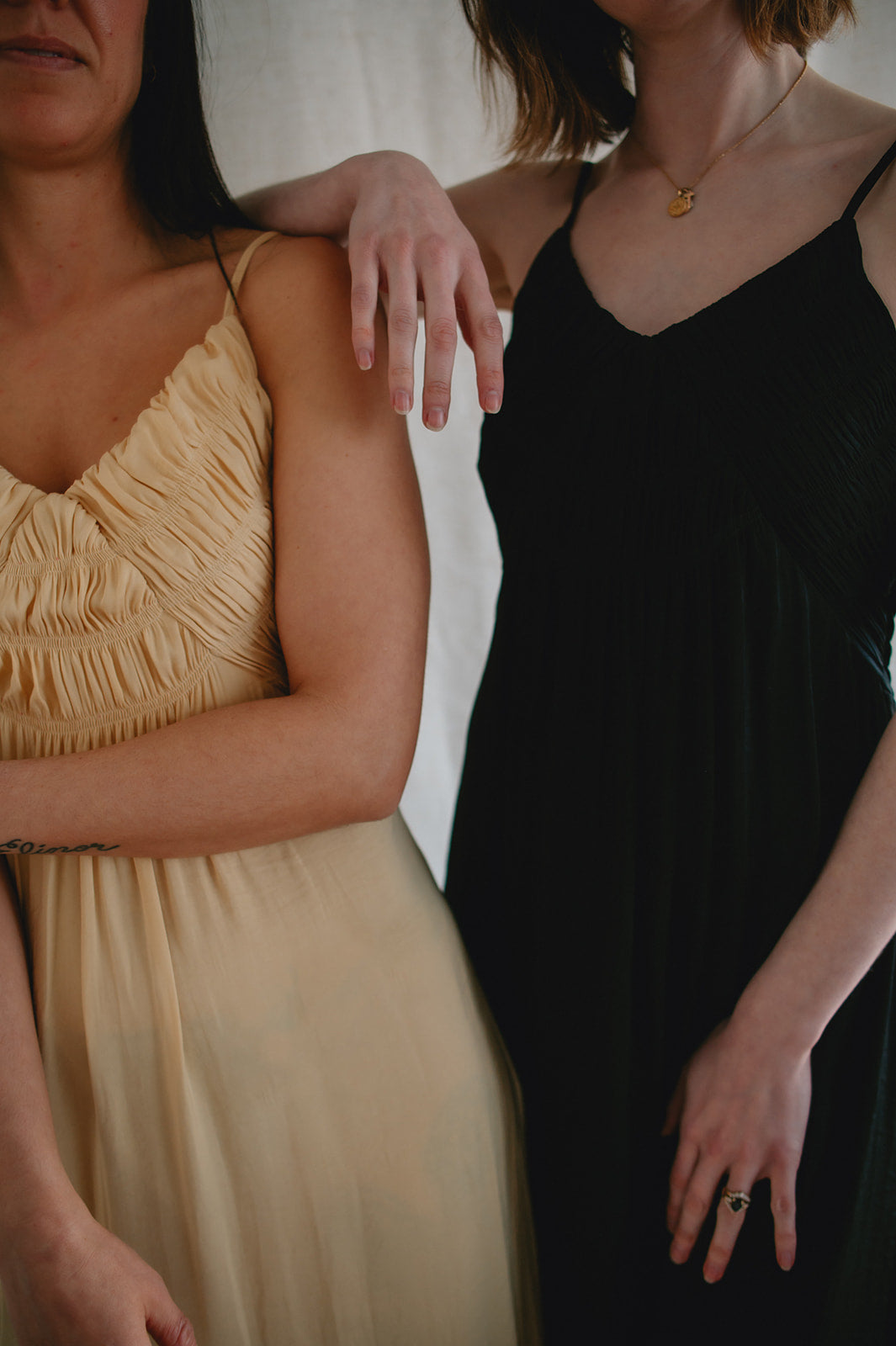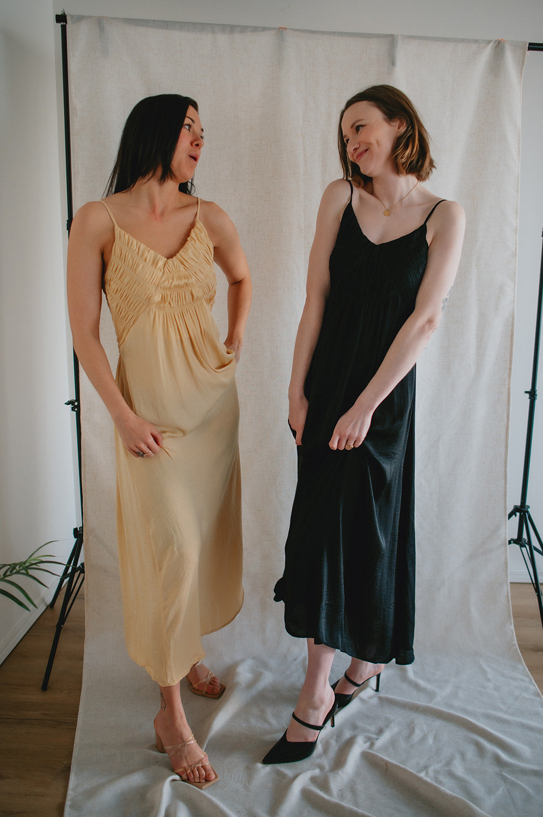 - Steph is wearing a S, Erinn wears a size XL (for bust)