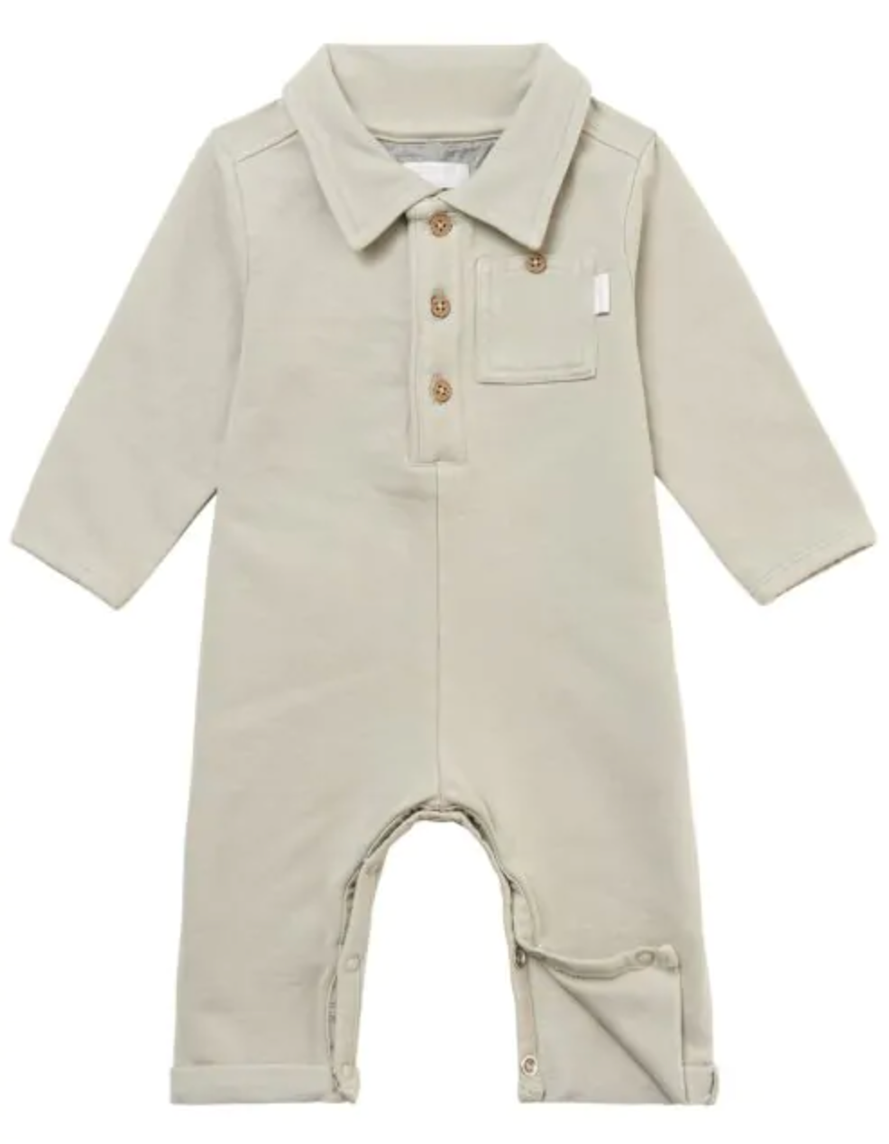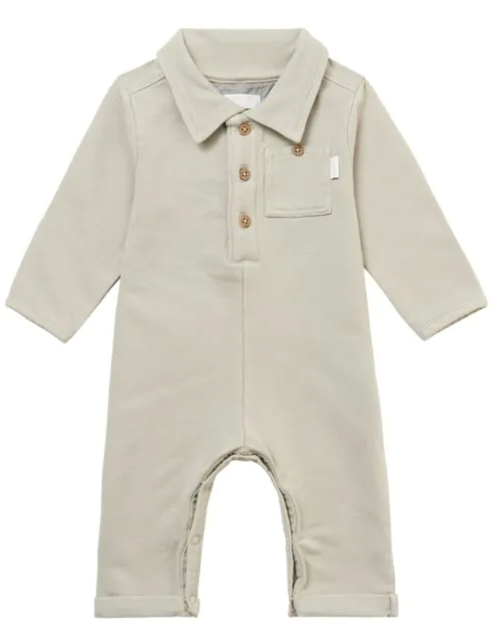 Time to play! Your little one is going to feel great all day long in this comfy playsuit from the Noppies Baby collection. The Mansura playsuit features a collar, a breast pocket and long sleeves. The wooden buttons on the chest and the inside leg buttons will make getting dressed, undressed and nappy changes a great deal easier. Lovely for both you and your baby!