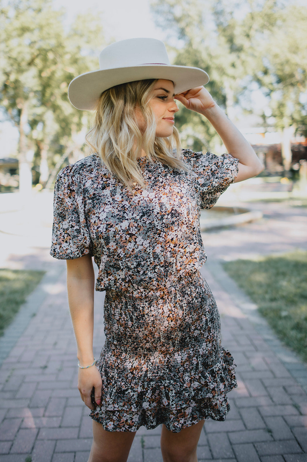 Every season is floral season! Our Addison Mini Dress features imported rayon fabric and a smocked lower body. Wear with black booties for a flirty, feminine aesthetic. Multicoloured florals are always in season, so keep this at the front of your closet!