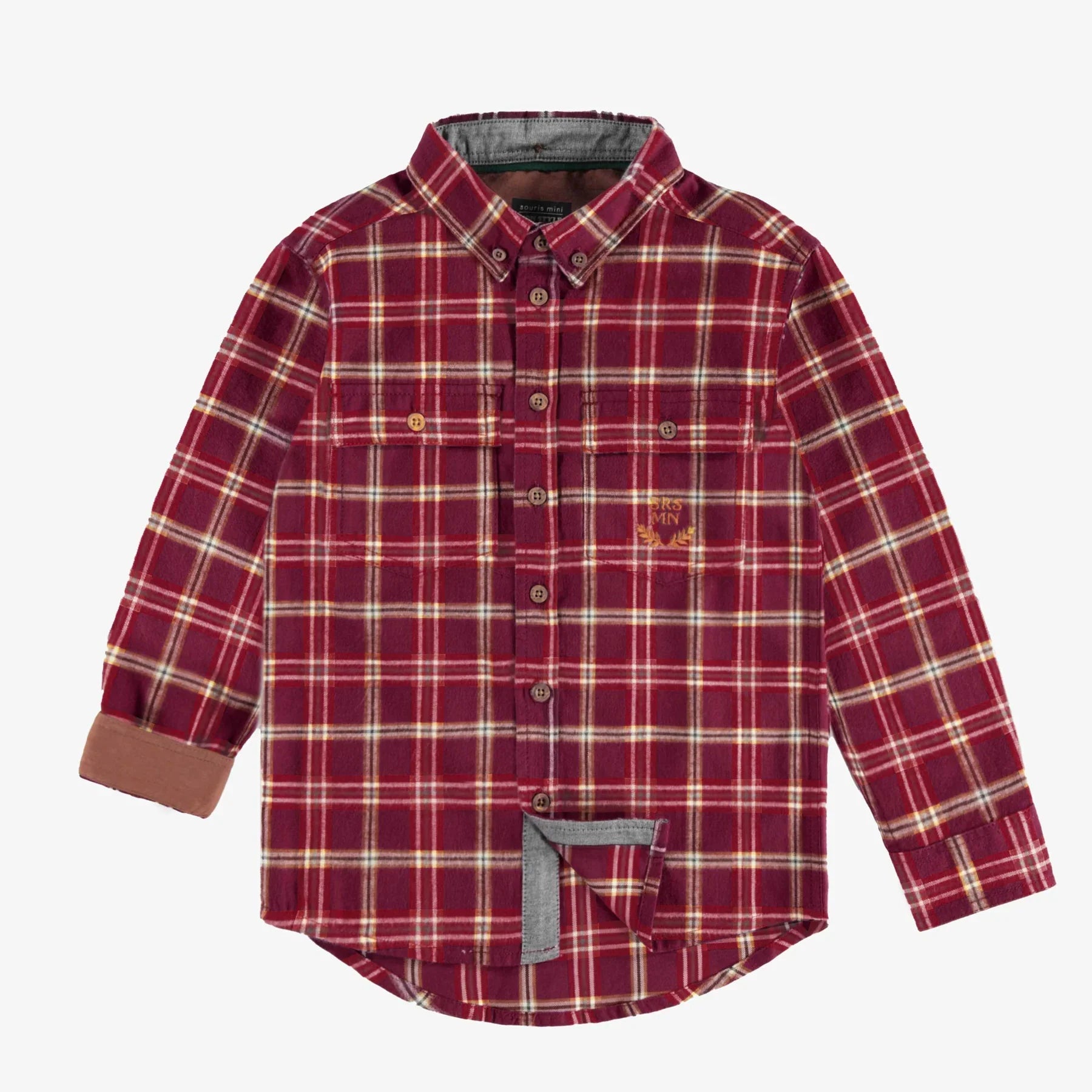 Elegant red and white plaid shirt in brushed flannel. Your mini will look absolutely charming in this shirt. Classic straight fit model made from a 100% natural breathable and comfortable material. A must-have for the holidays and wear for all occasions.