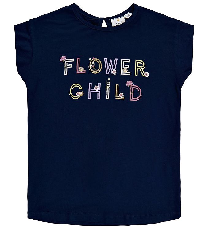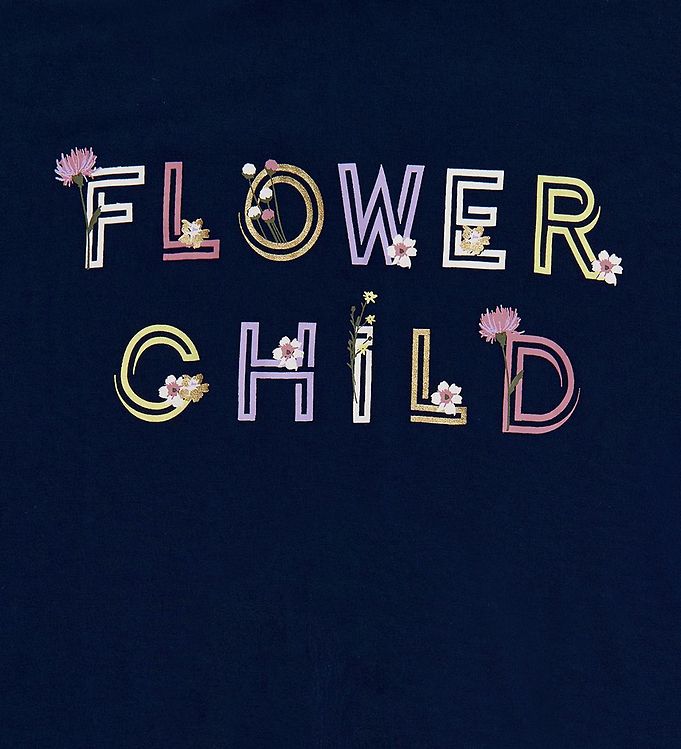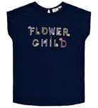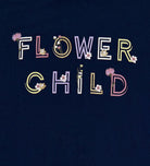 Lovely The New T-shirt in navy with "Flower Child" written on the front in beautiful colours.