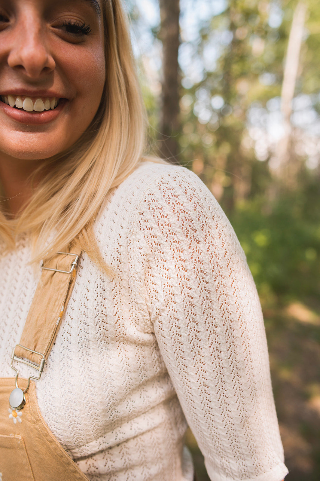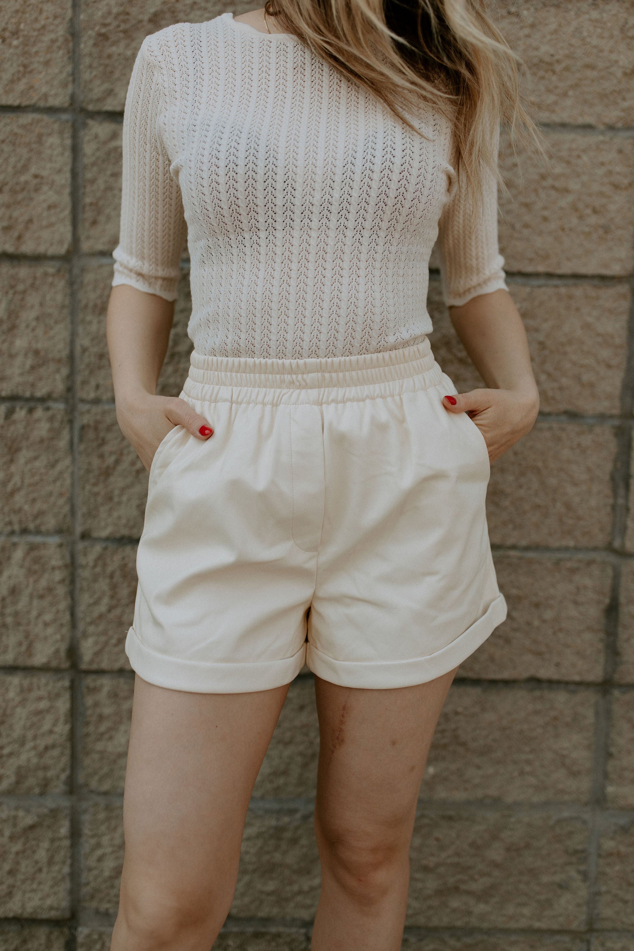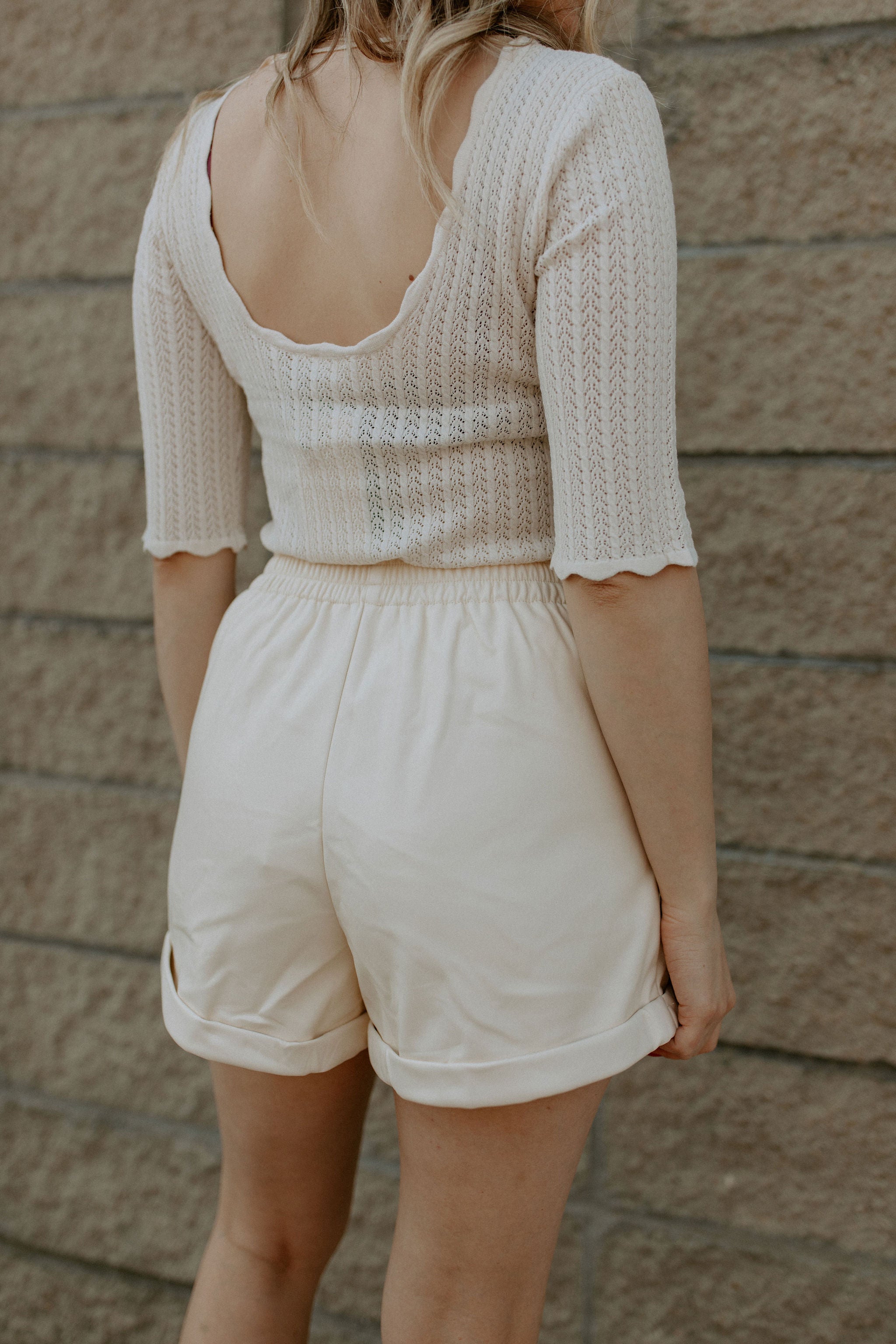 Scalloped edge sleeve pointelle detail scoop back tee. Stunning.