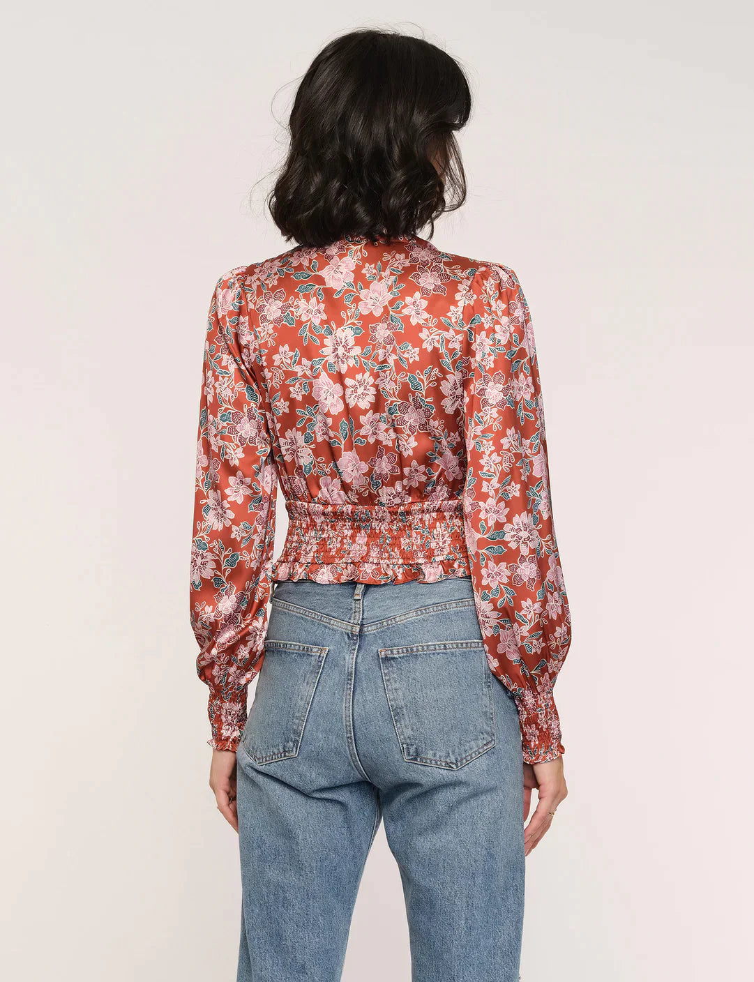 The Hallie Top is cut from silky satin and features a keyhole neckline and puff sleeves. With its rouching detail along the neck and sleeve, it's perfect for day-to-night wear.