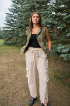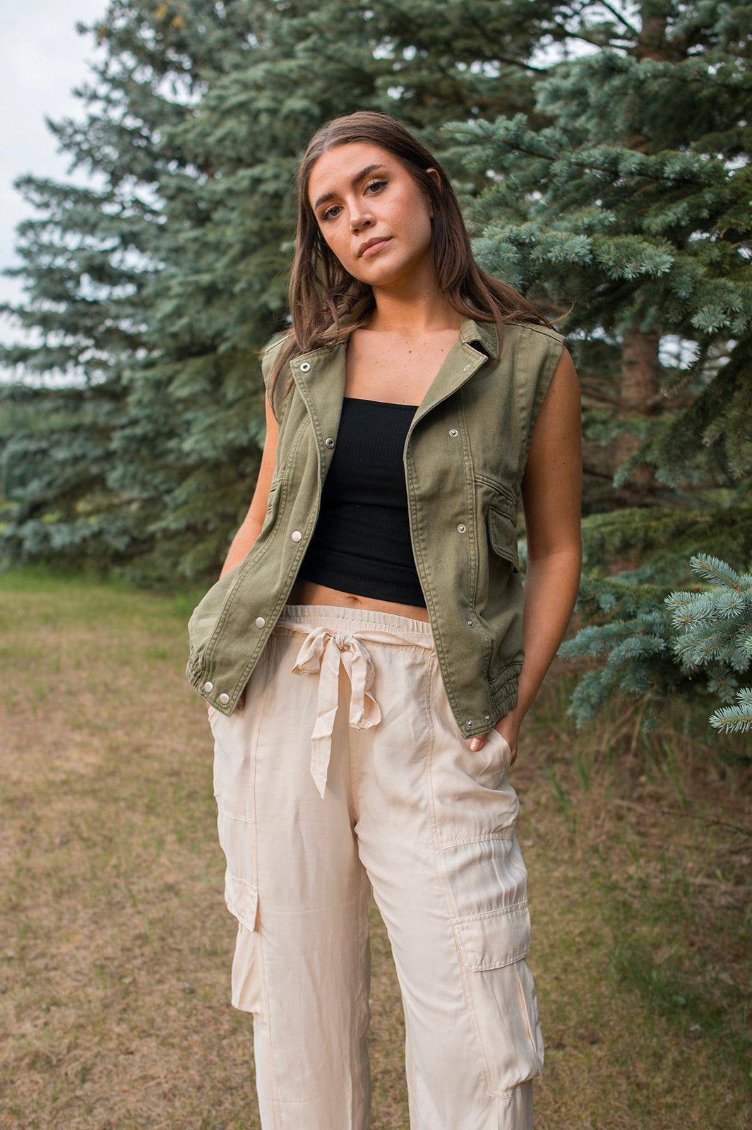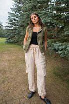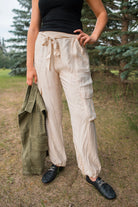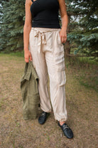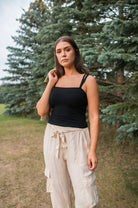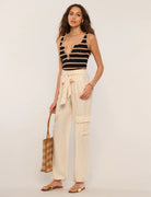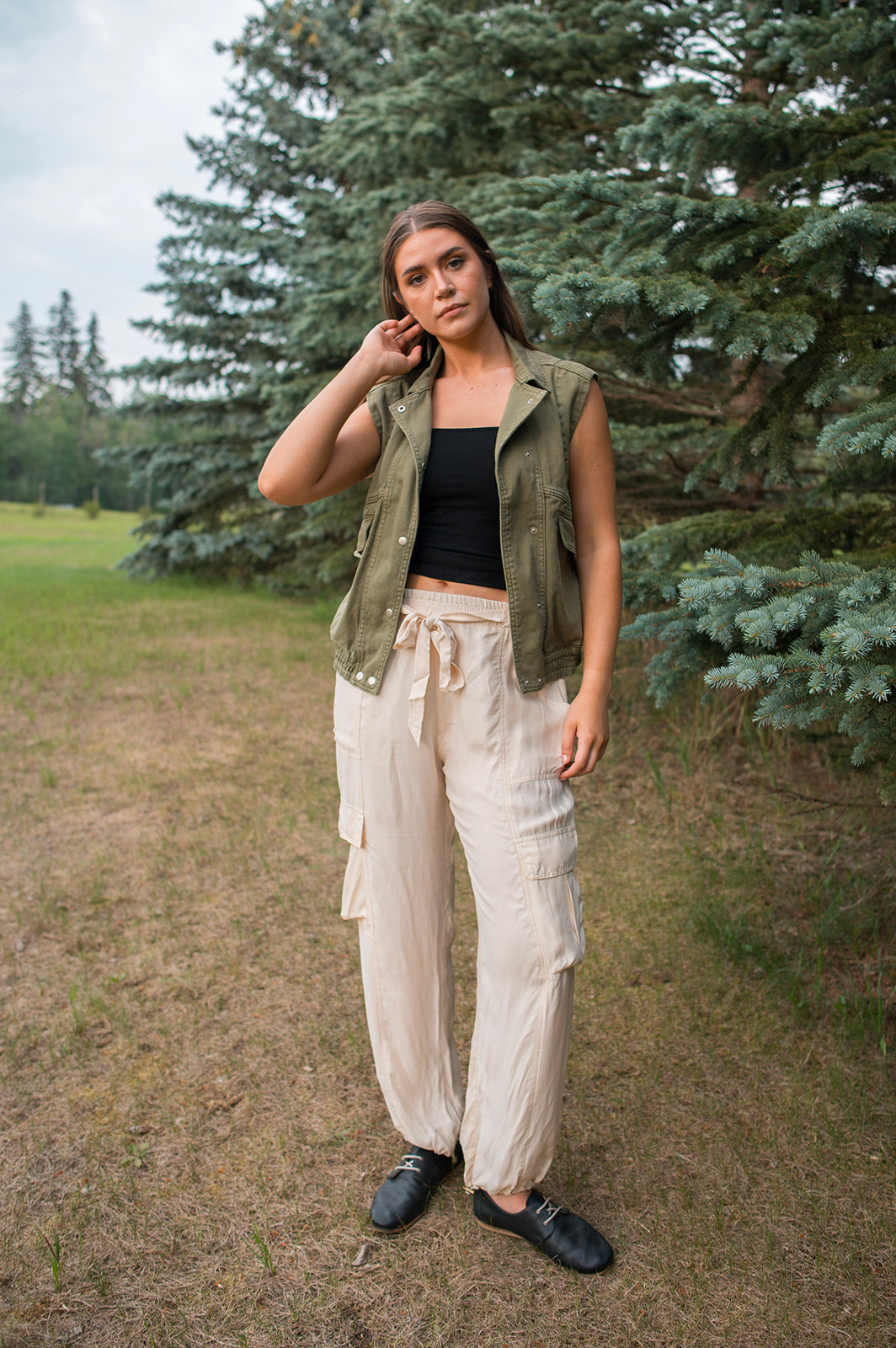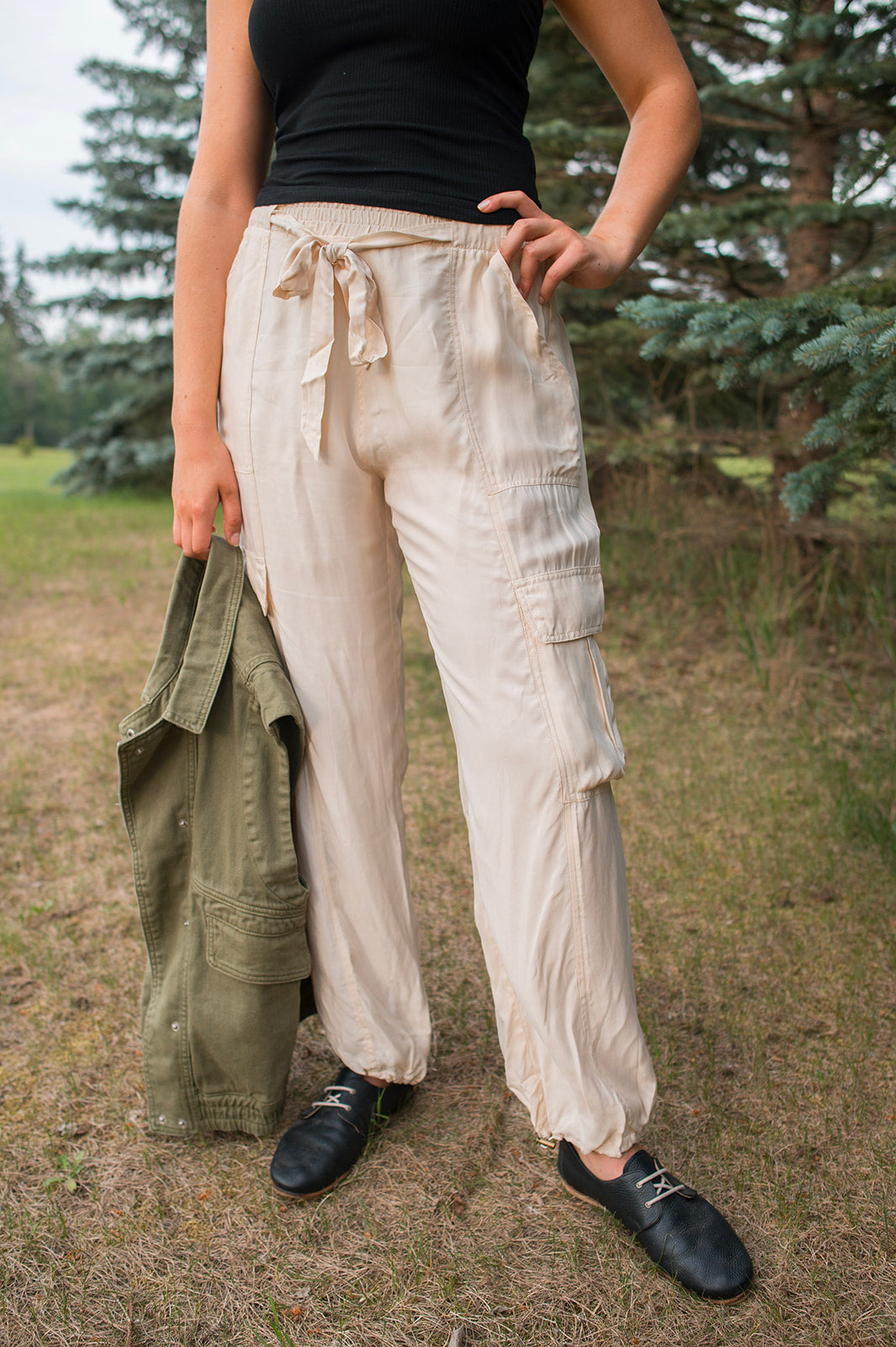 The Jette Pant is effortless and polished. It has a relaxed fit and side cargo pockets, with a pull-on fit for easy wear. Pair with a cropped tank or tee for an effortlessly put-together look.