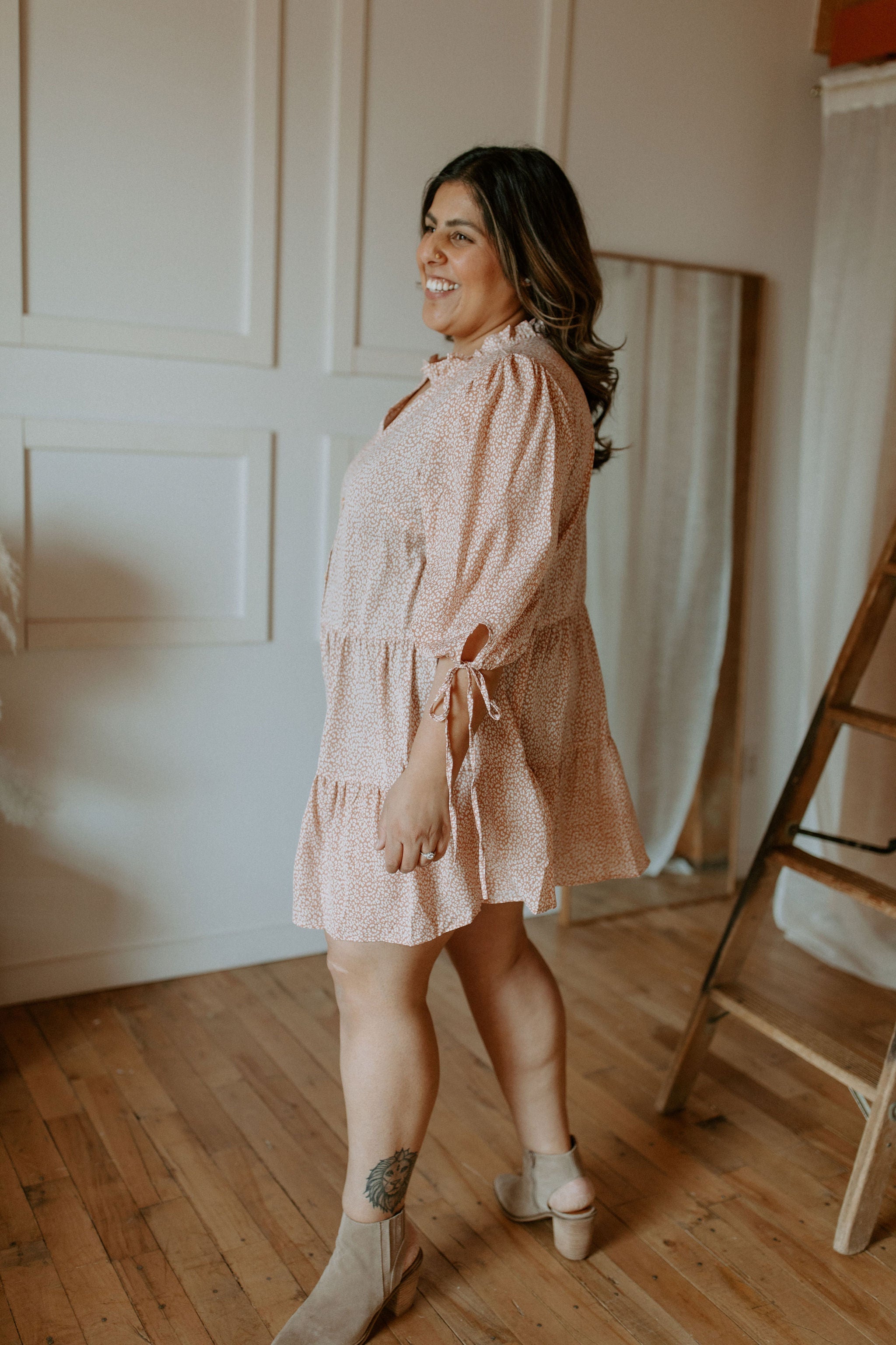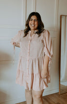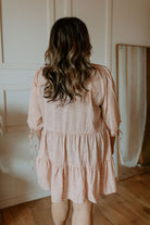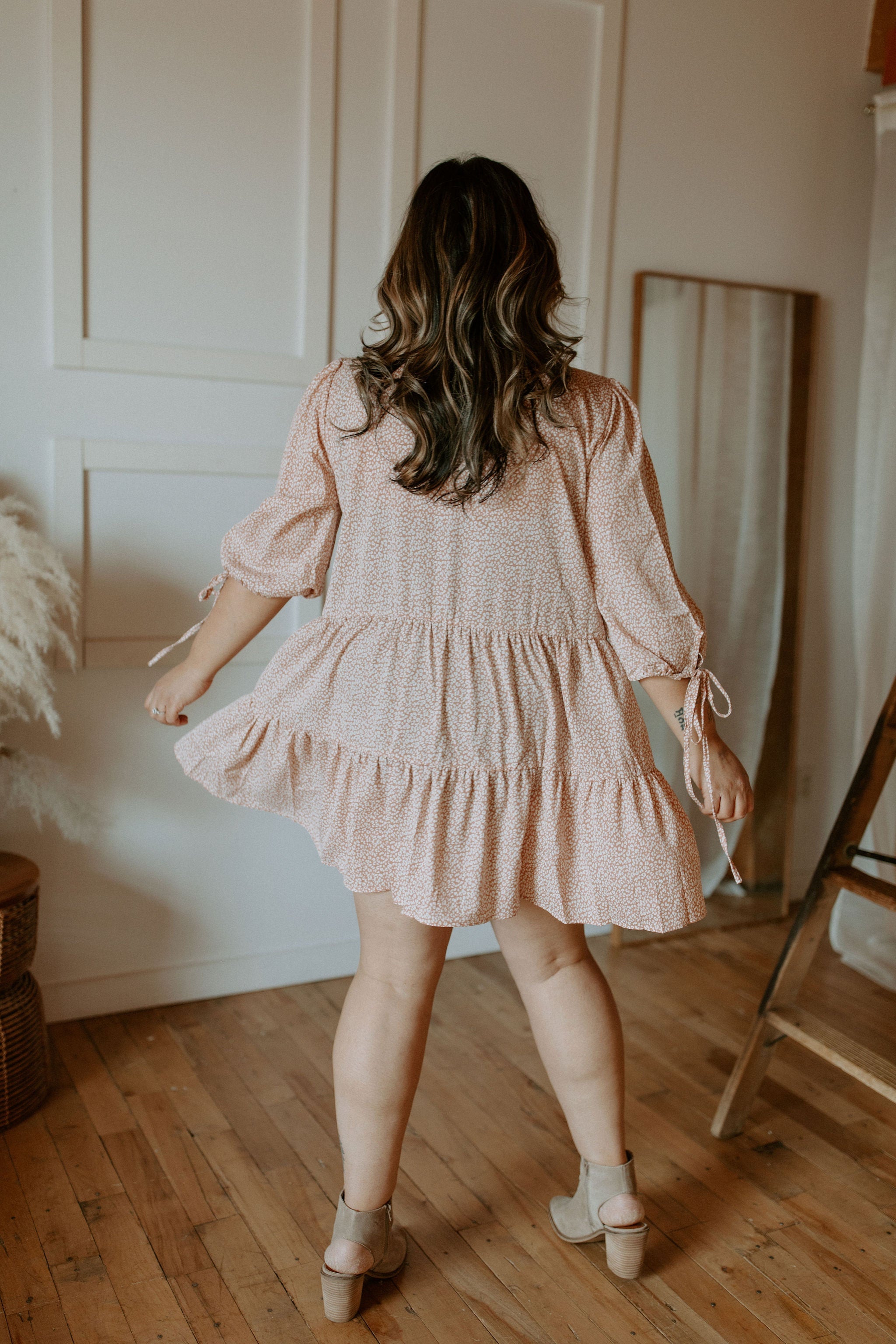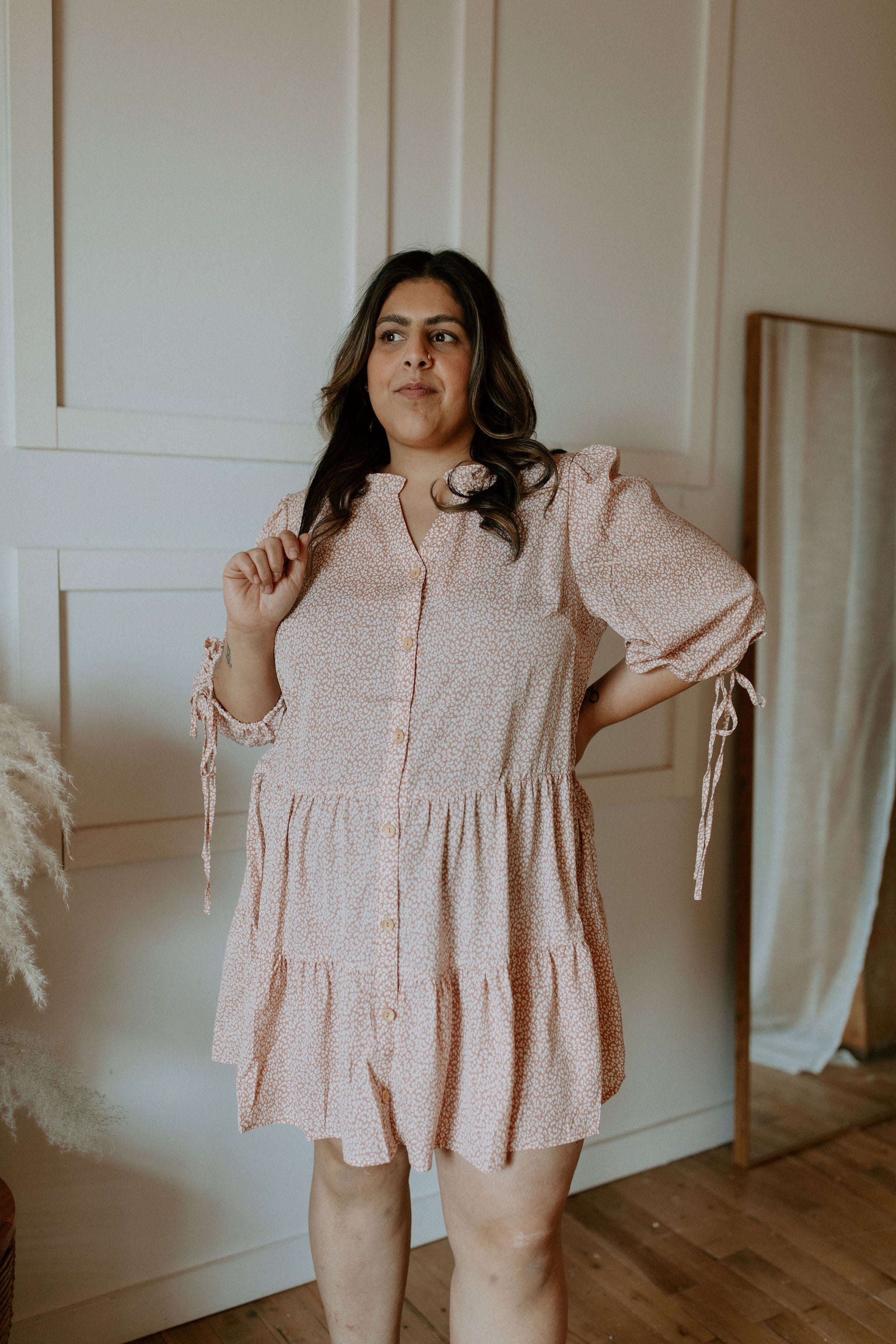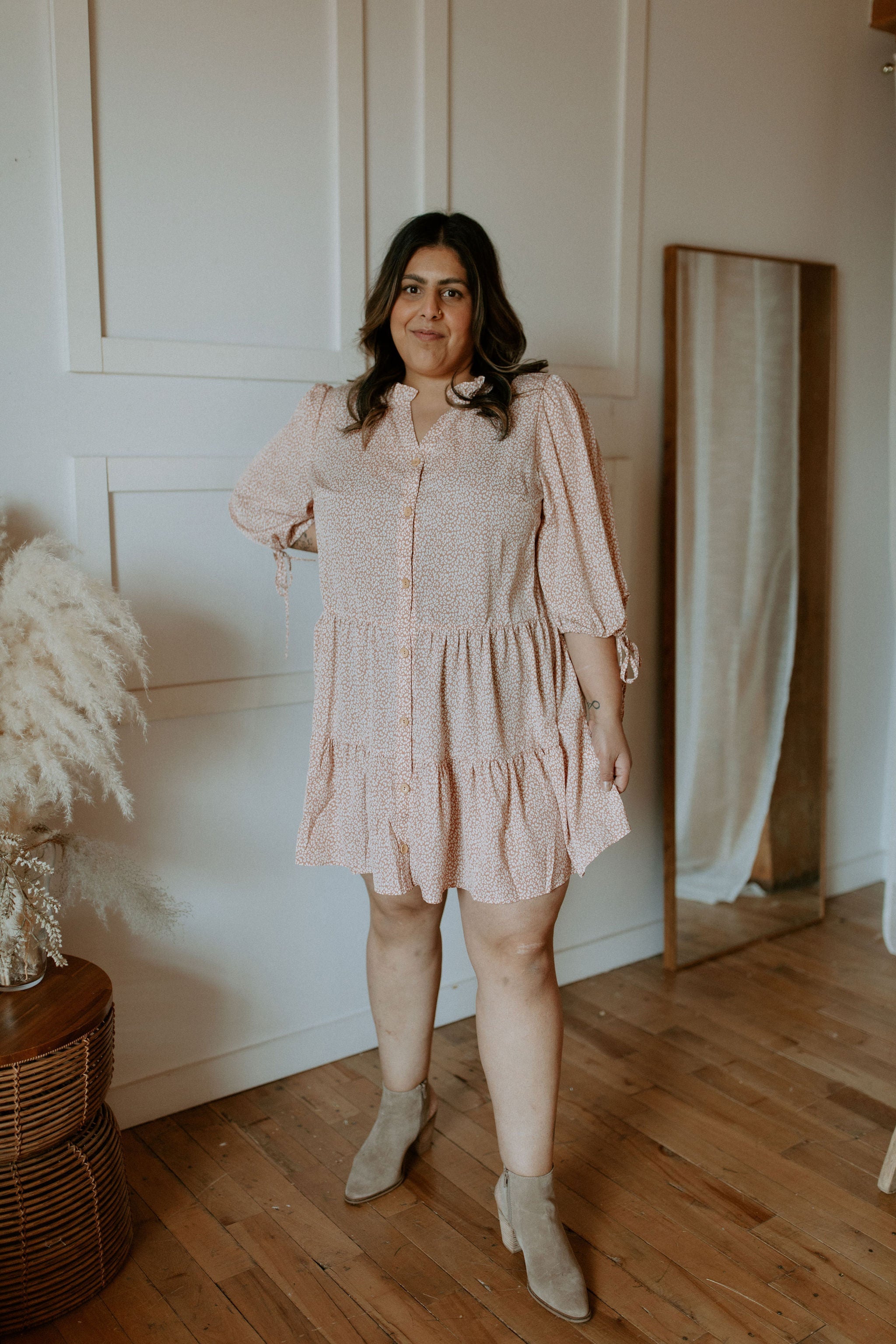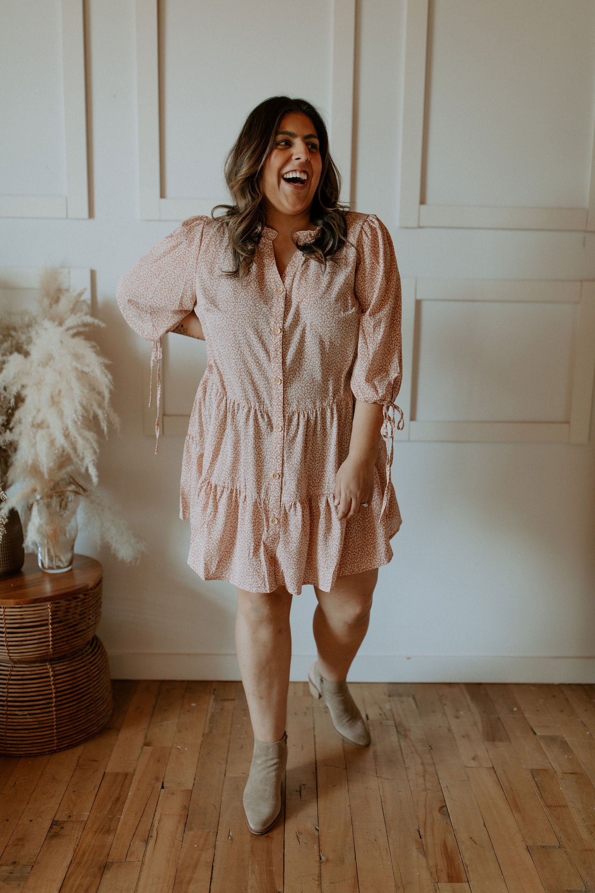 Pretty and sweet, the most darling 'everyday' dress. Functional buttons down the front, with a tiered length and bracelet sleeves. Literally can take this dress to any occasion.