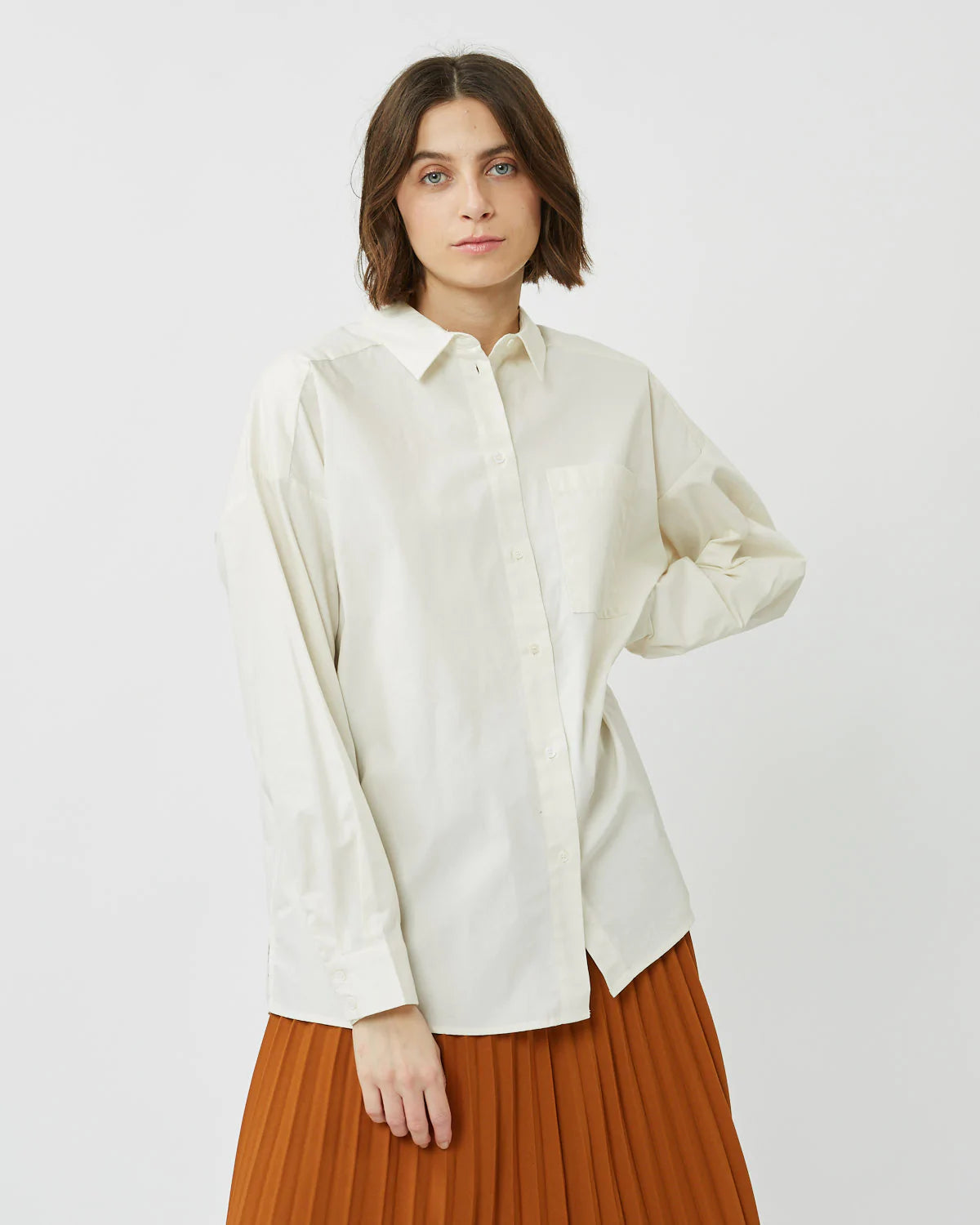 The Luccalis is a classic long-sleeved shirt crafted from 100% soft, organic cotton. The shirt has a loose fit and features slit along the sides, a chest pocket, dropped shoulders and cuffs.