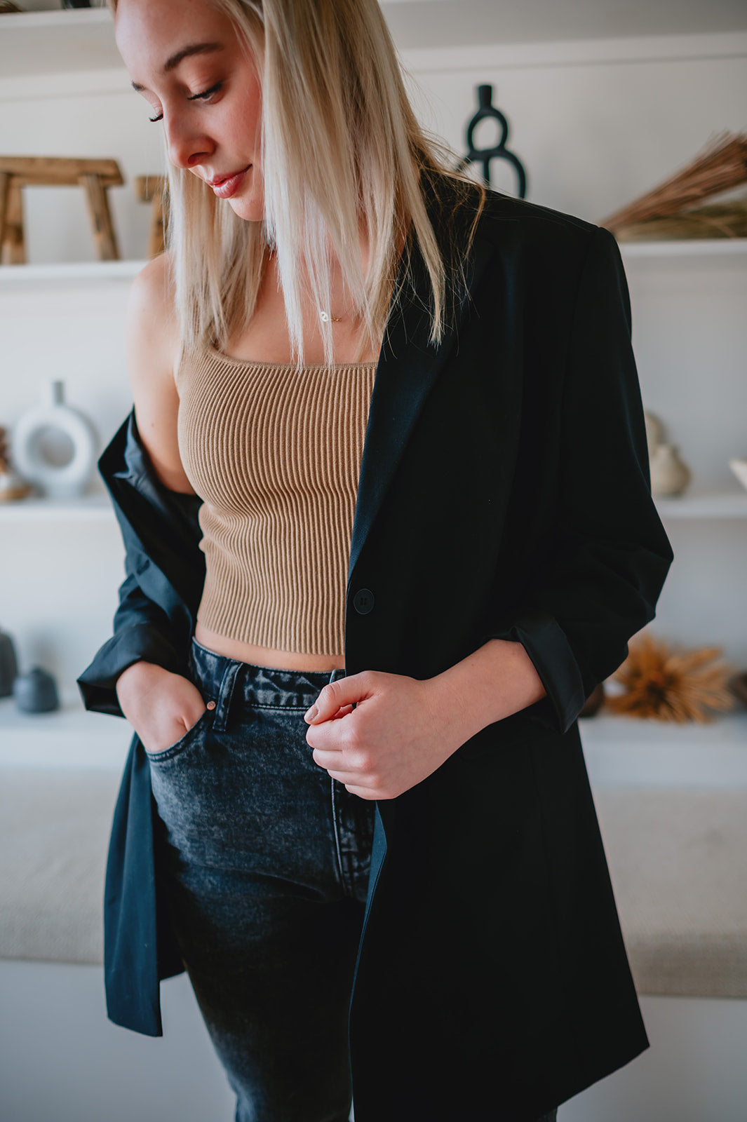 You can't go wrong with an oversized yet structured black blazer. Longer length
