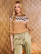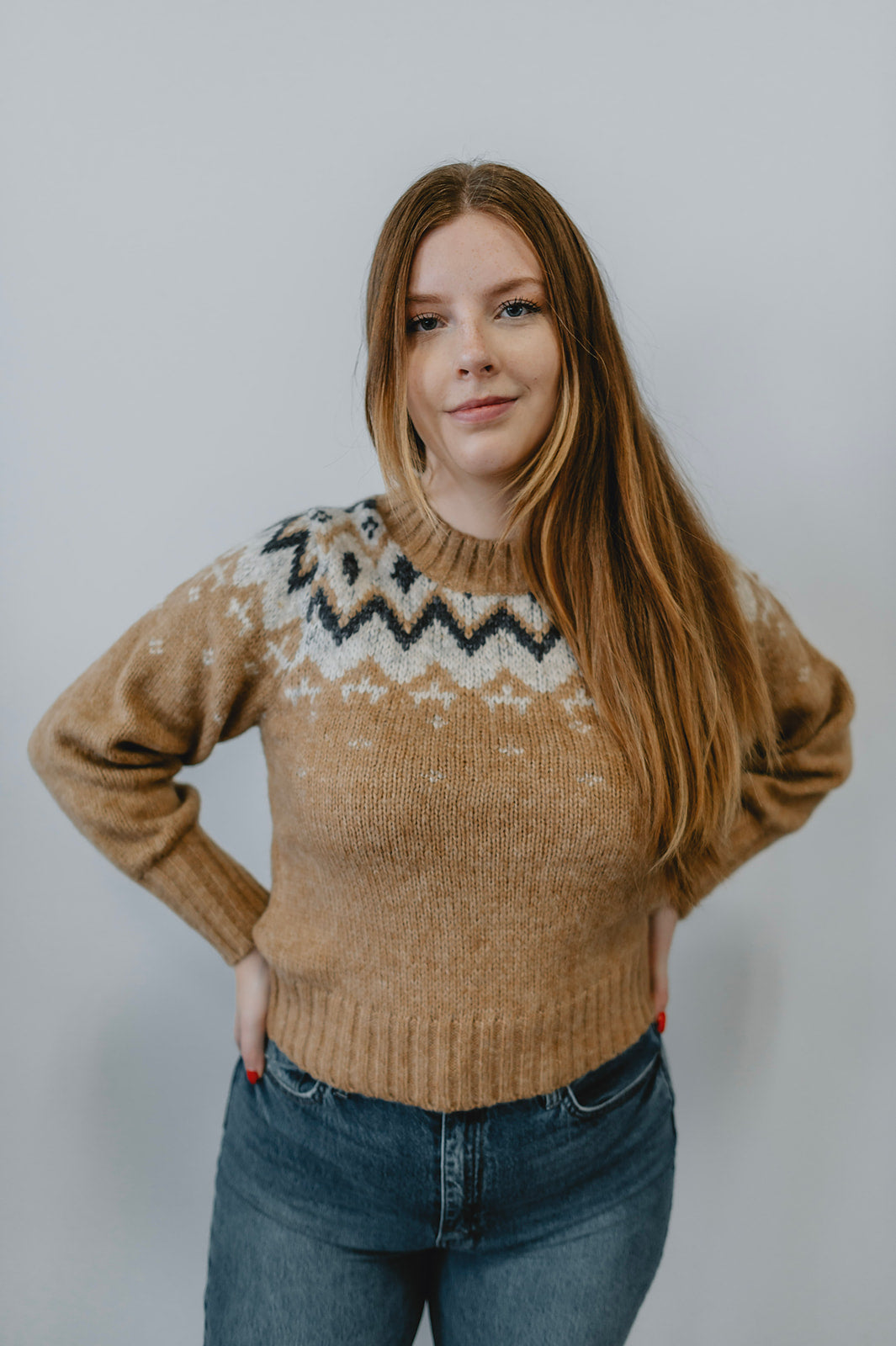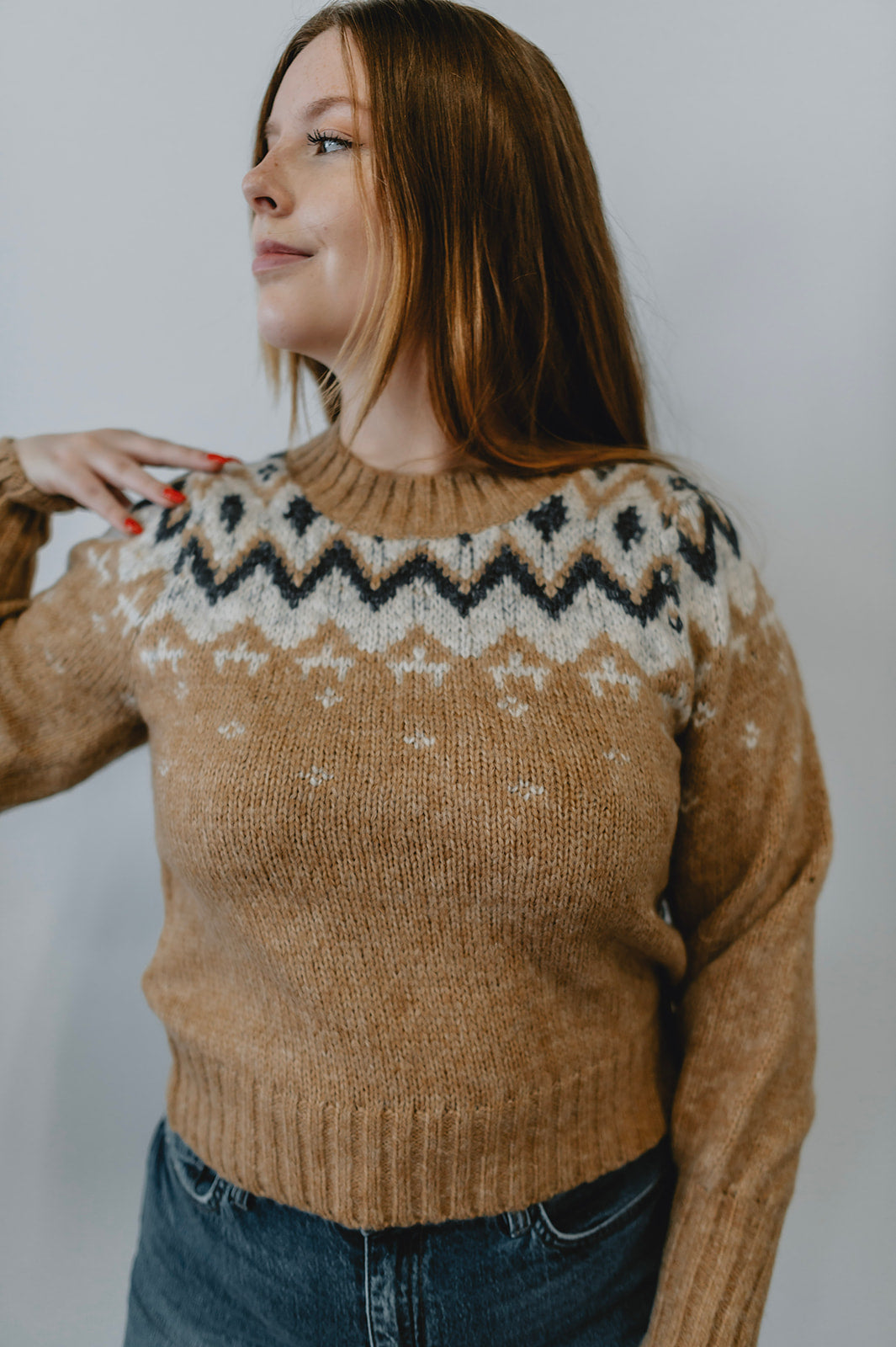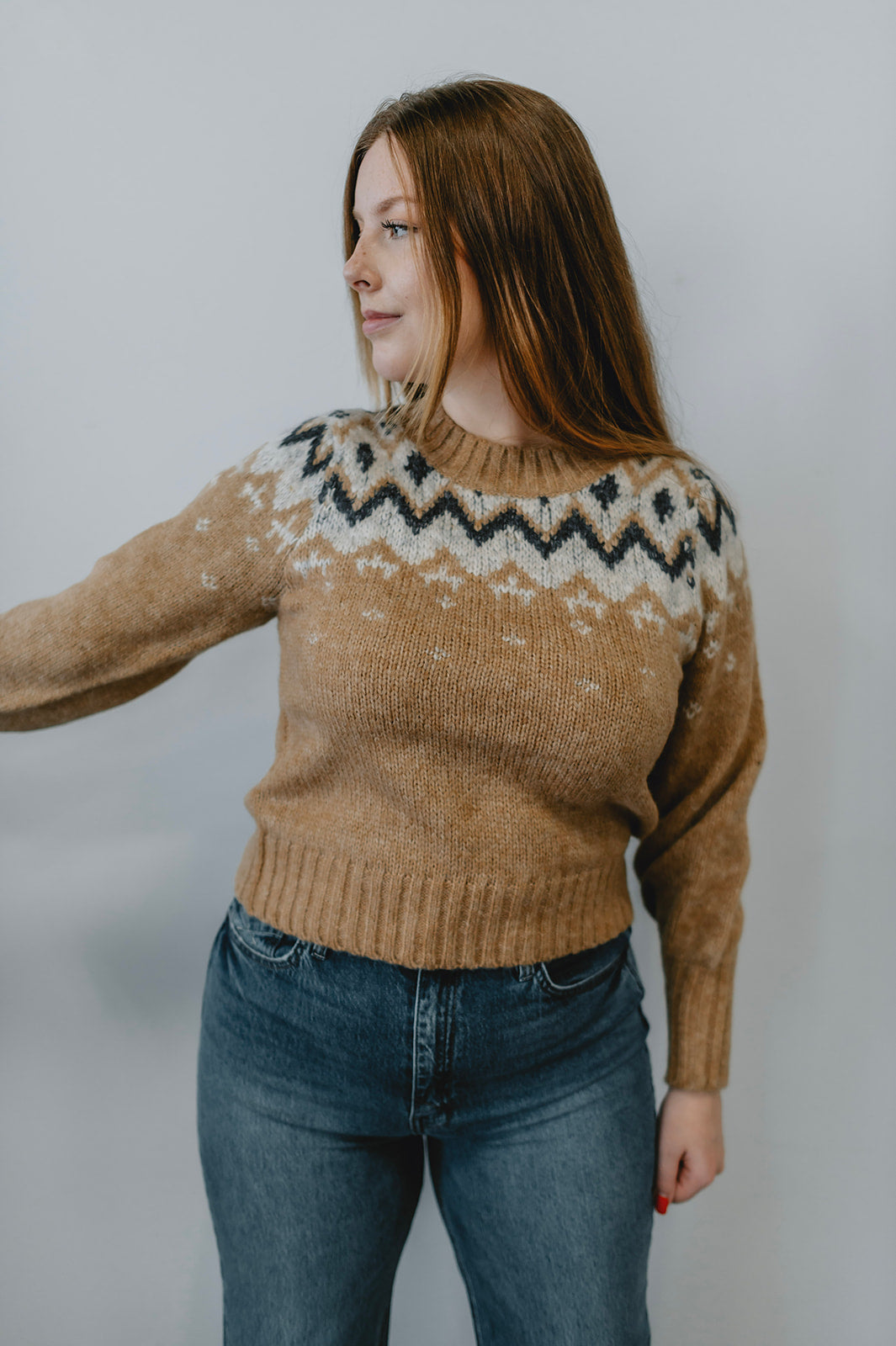 A cold weather essential, our Sara Sweater is knit from our softest yarn in a classic fair isle knit. With its easy relaxed fit and raglan sleeves, it pairs perfectly with jeans and boots for an easy look for any day of the week.