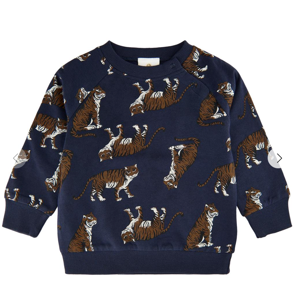 Nice sweatshirt in soft organic cotton with a cool print all over. Push button closure at front seam.