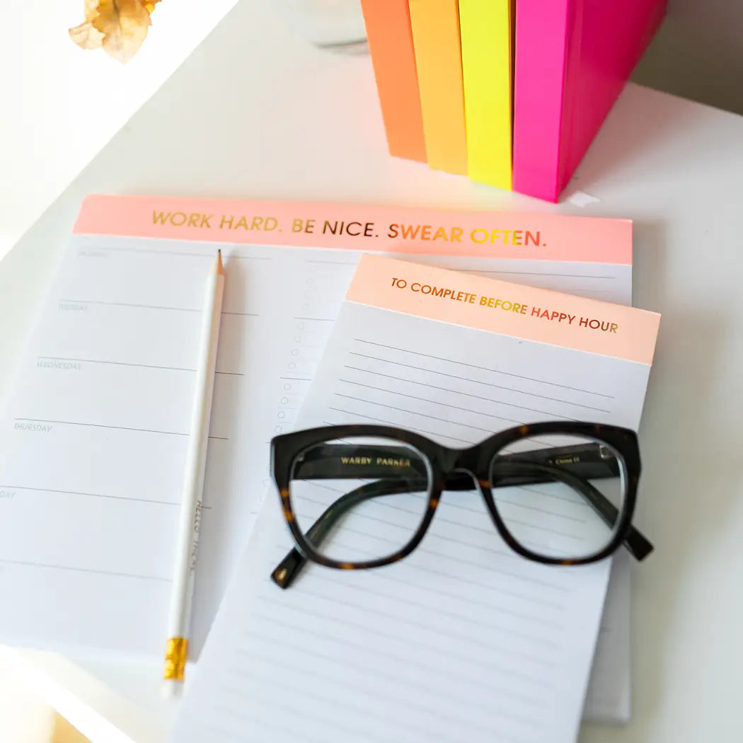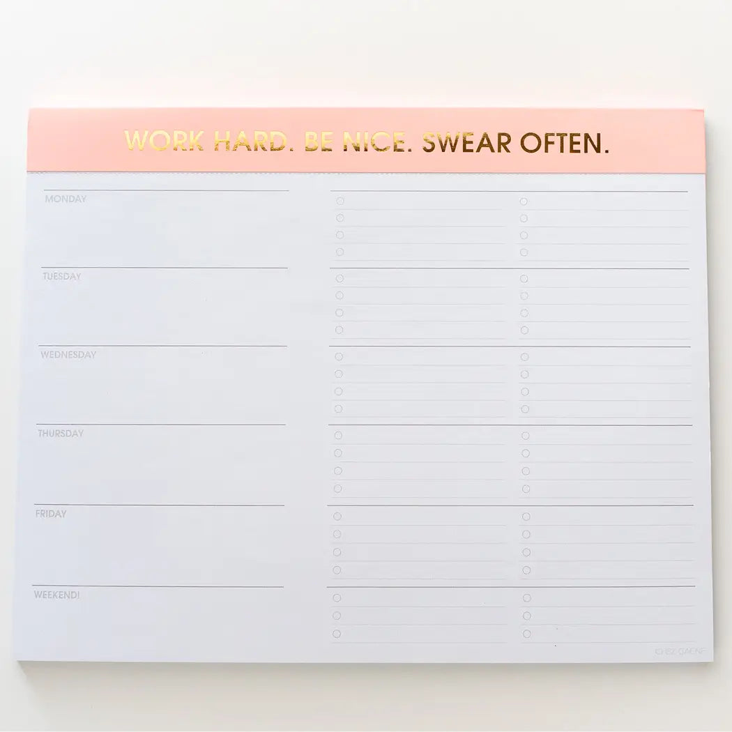 "Work Hard. Be Nice. Swear Often" Weekly Planner Notepad.