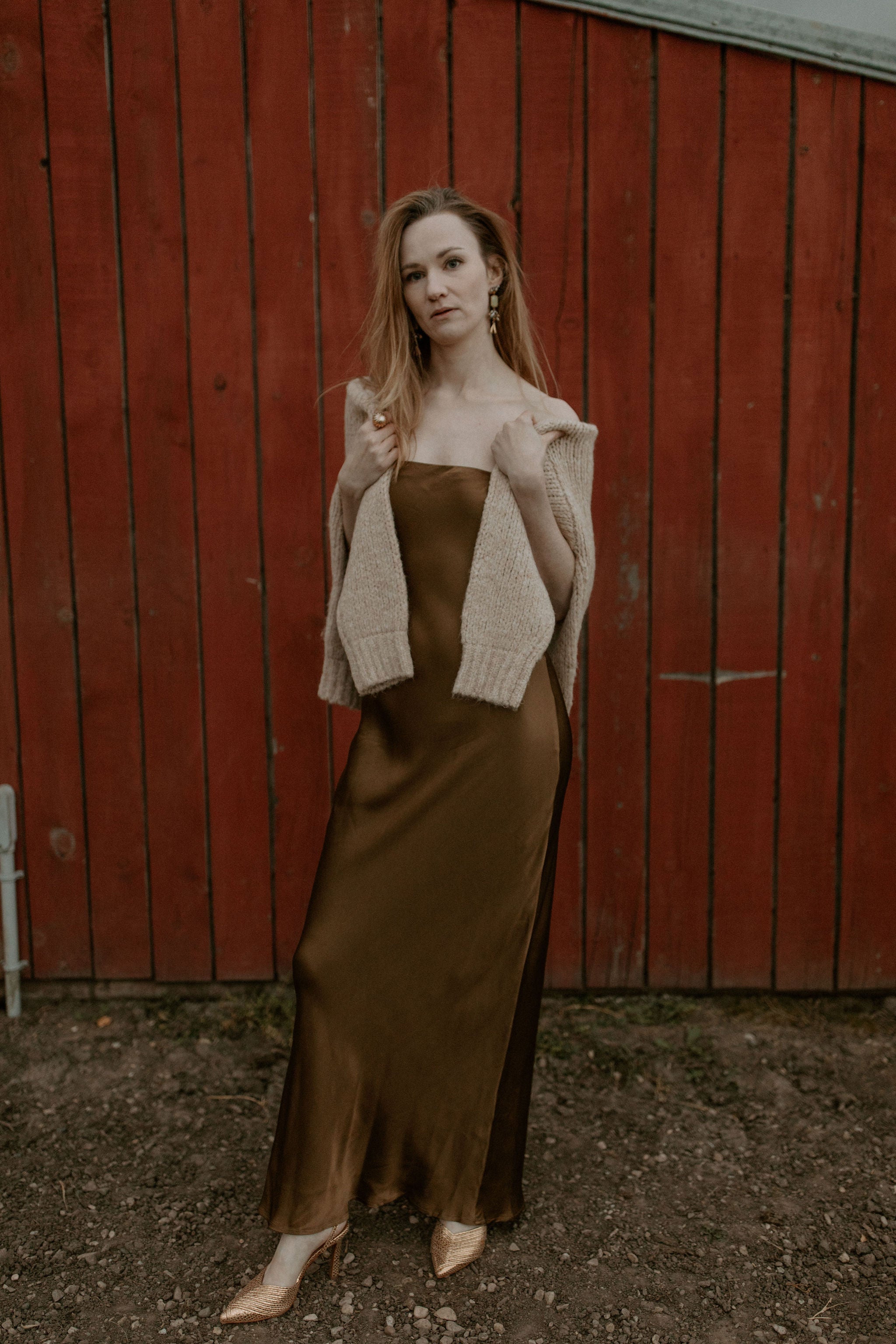 The Genevieve Column Dress - Bronze