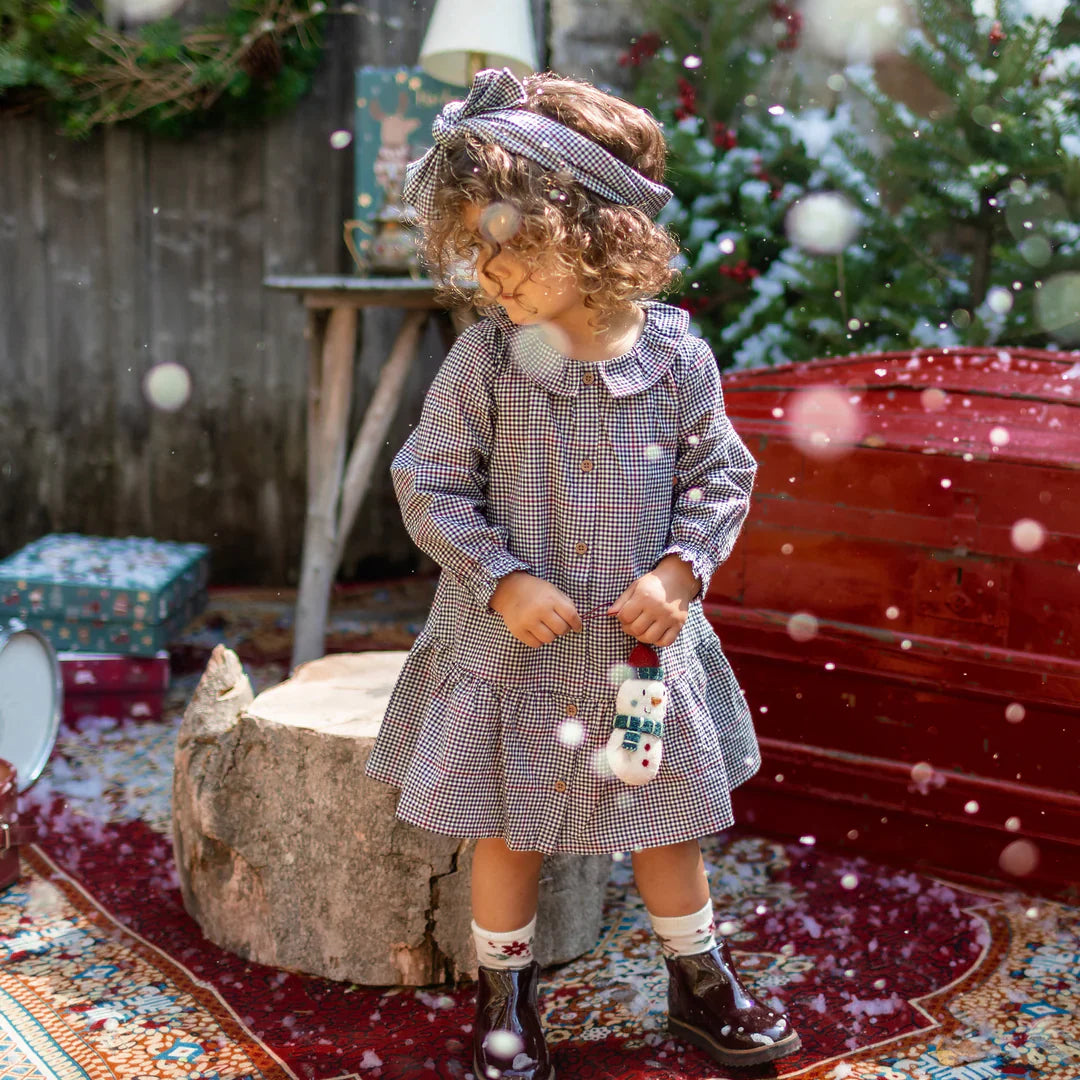 A timeless dress that will be worn all season and will pass from one child to another. Pair it with tights and headband for a complete look.