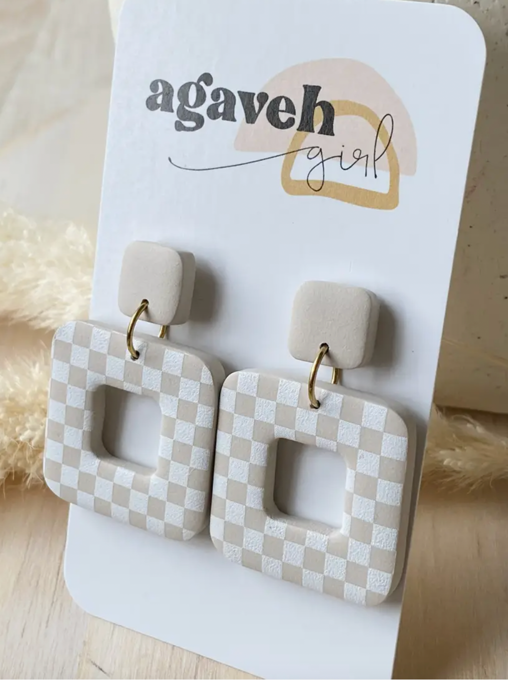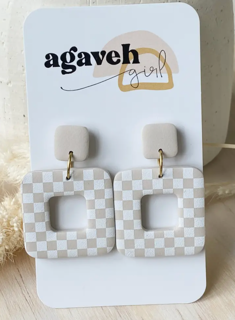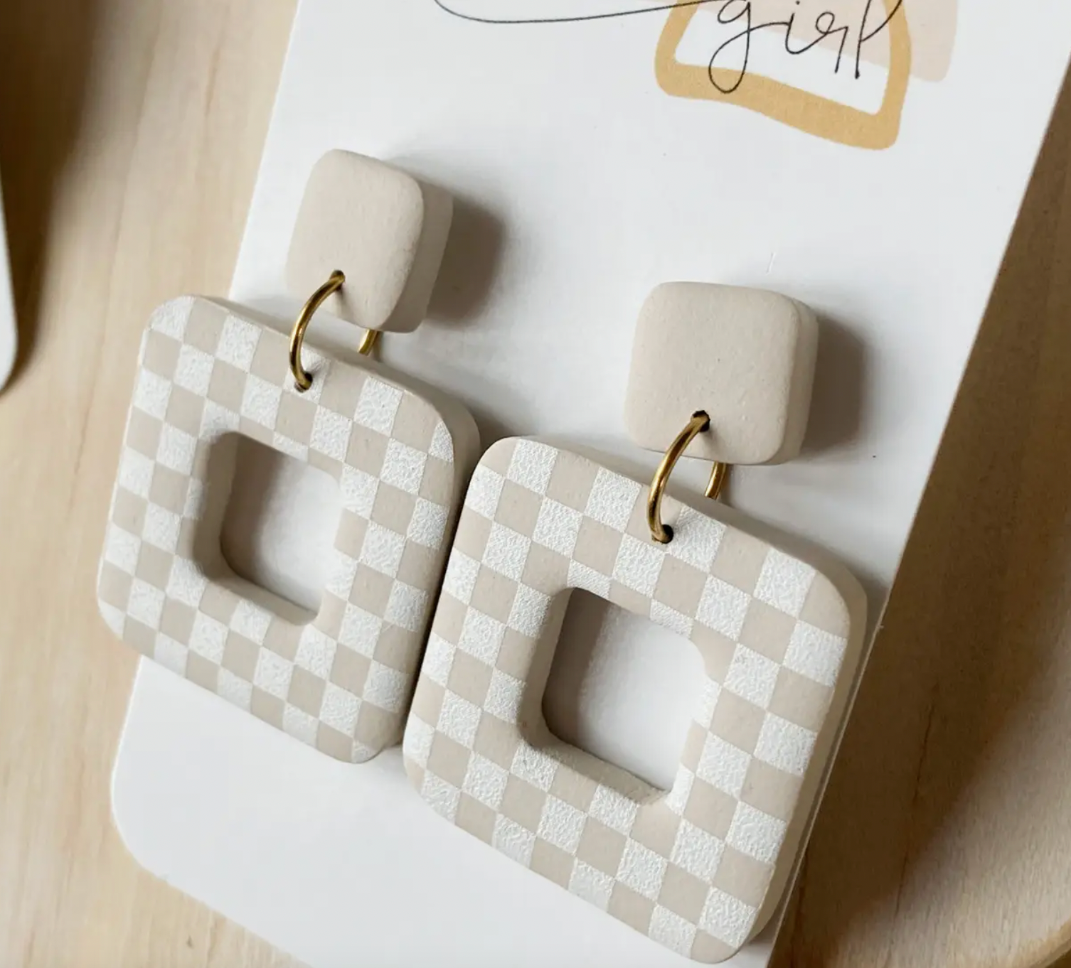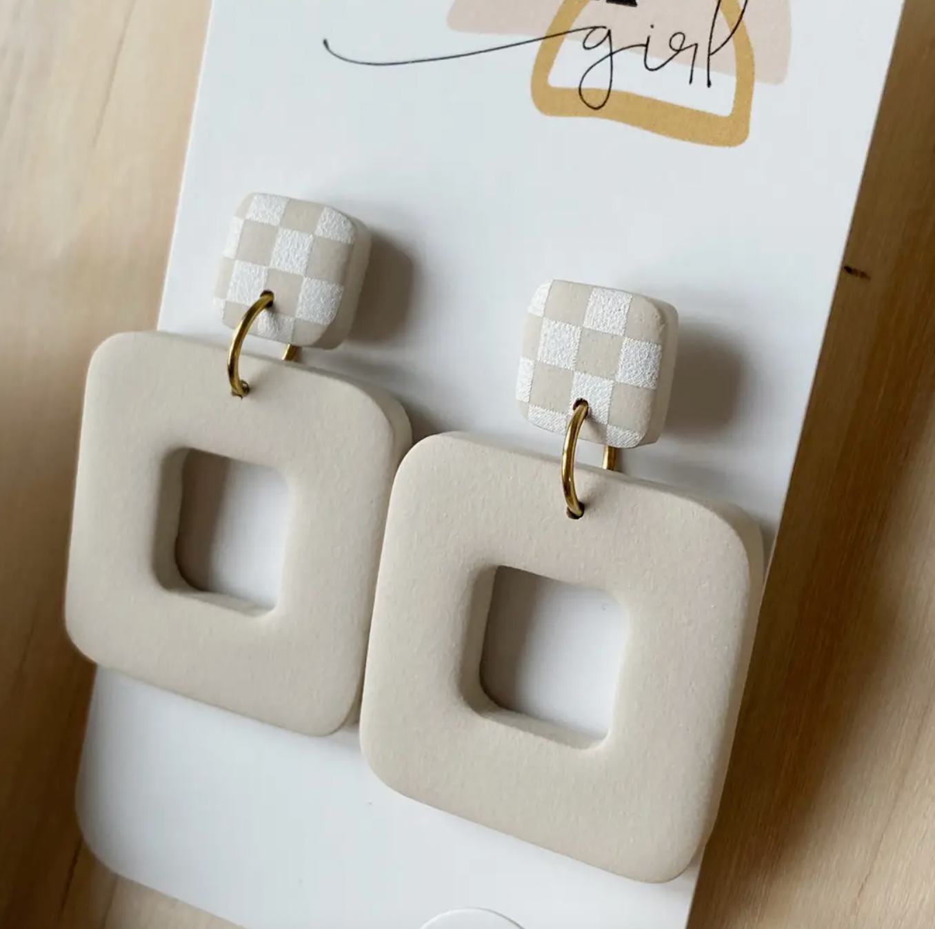 These mid-century earrings mixed with a skater beach vibe is where it's at! The neutral colours will be sure to match your everyday outfits. Nickel free and lightweight.