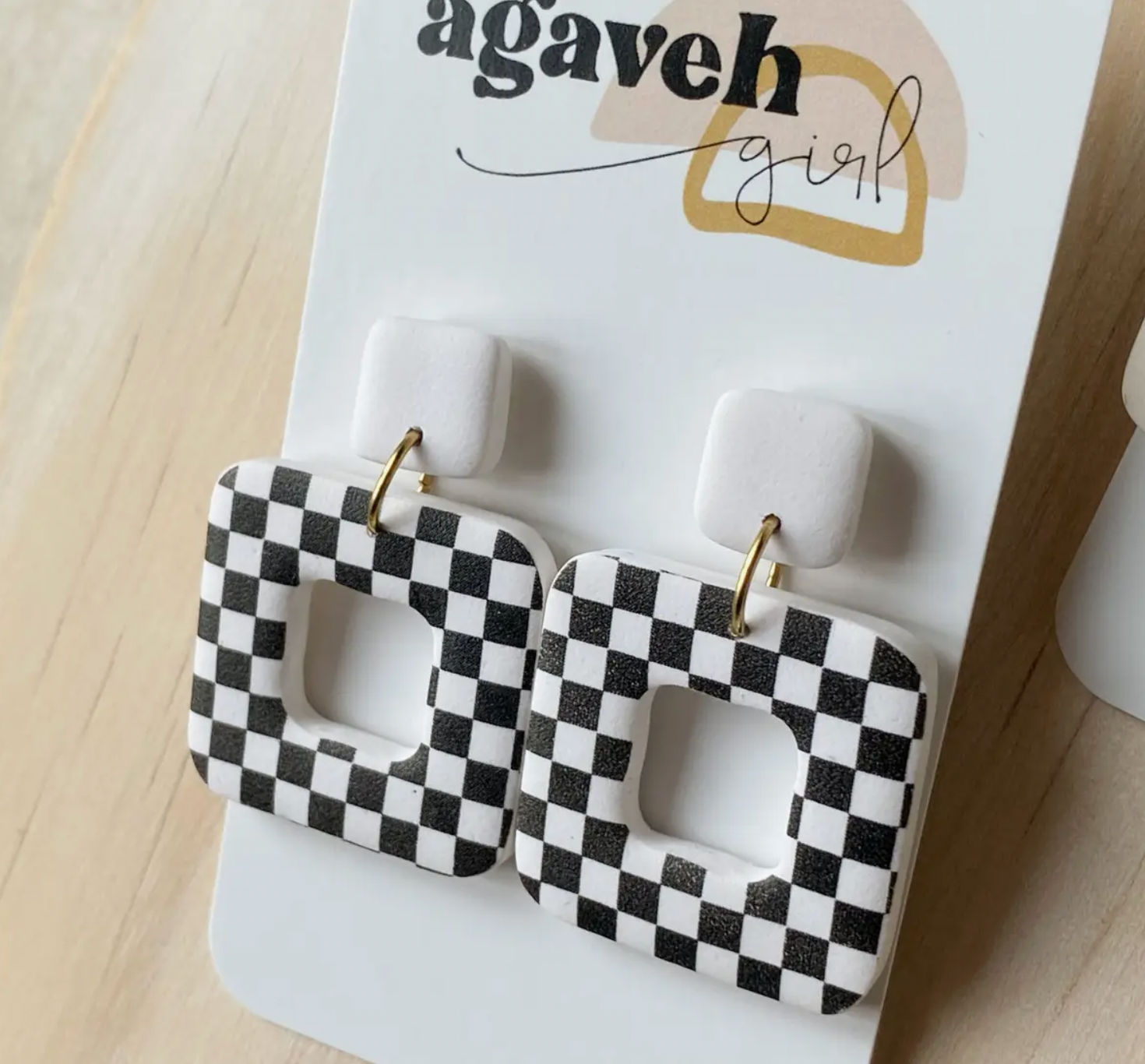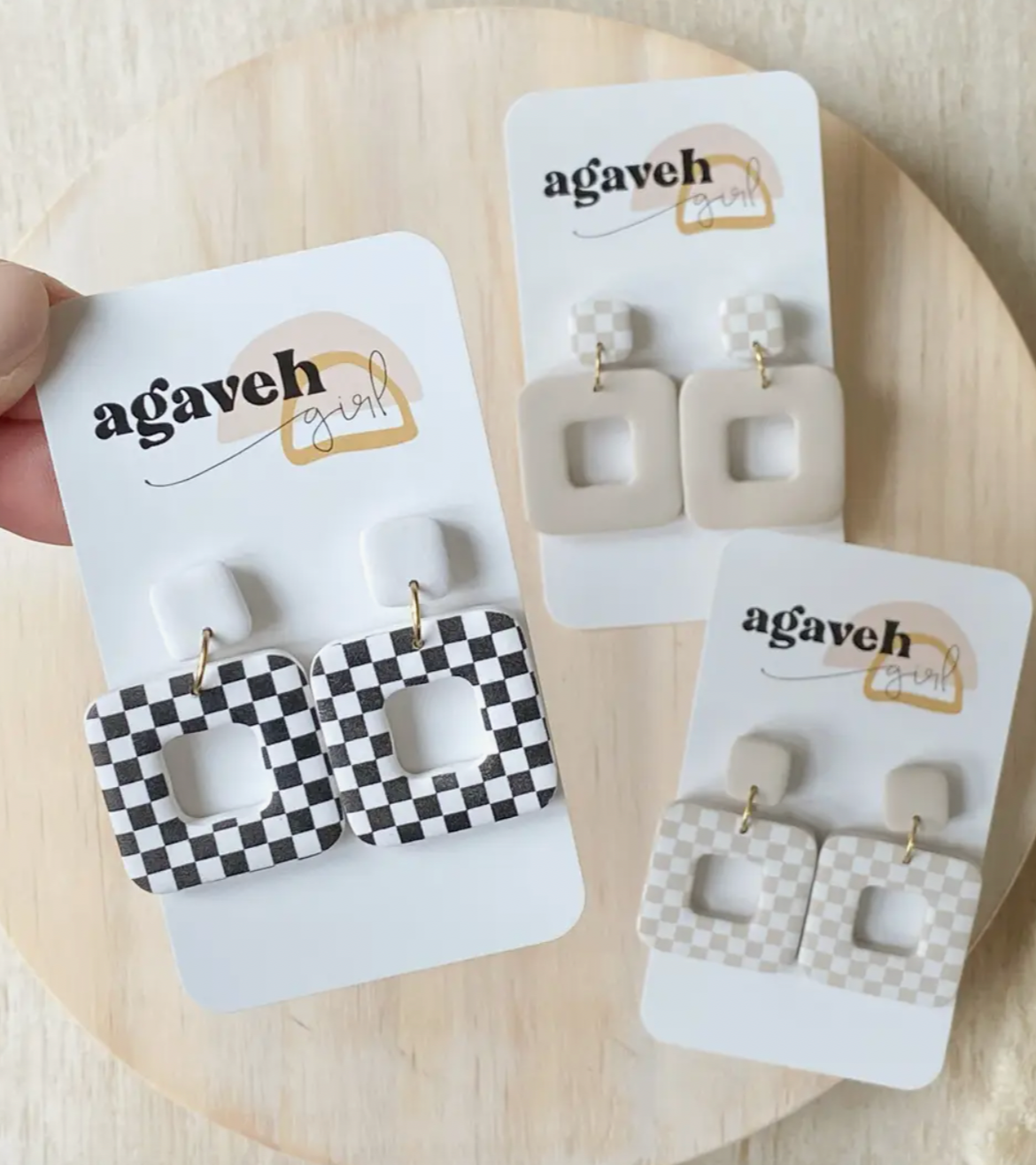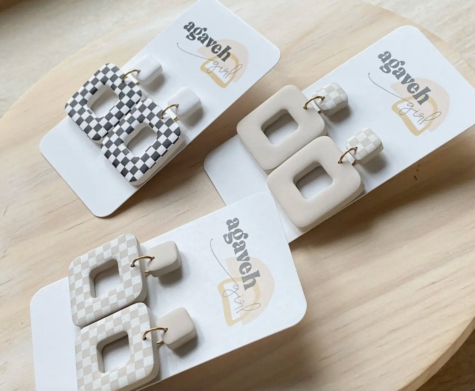 These mid-century earrings mixed with a skater beach vibe is where it's at! The neutral colours will be sure to match your everyday outfits. Nickel free and lightweight.