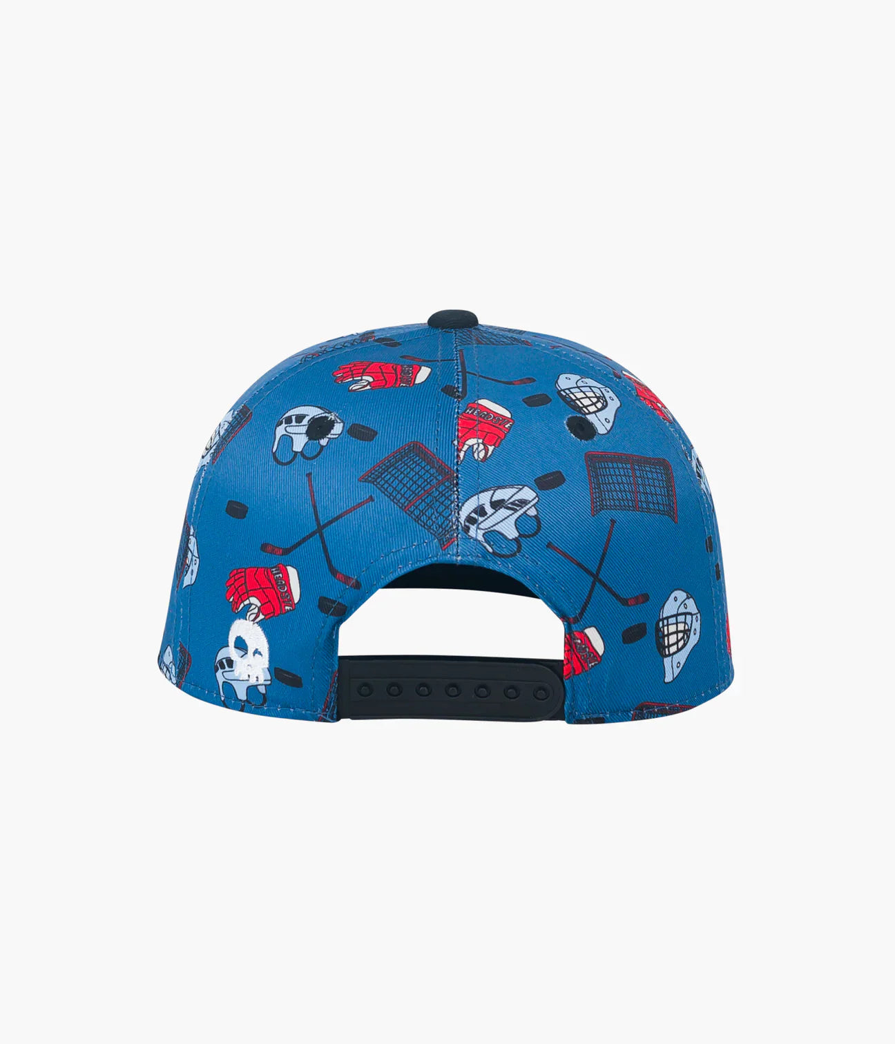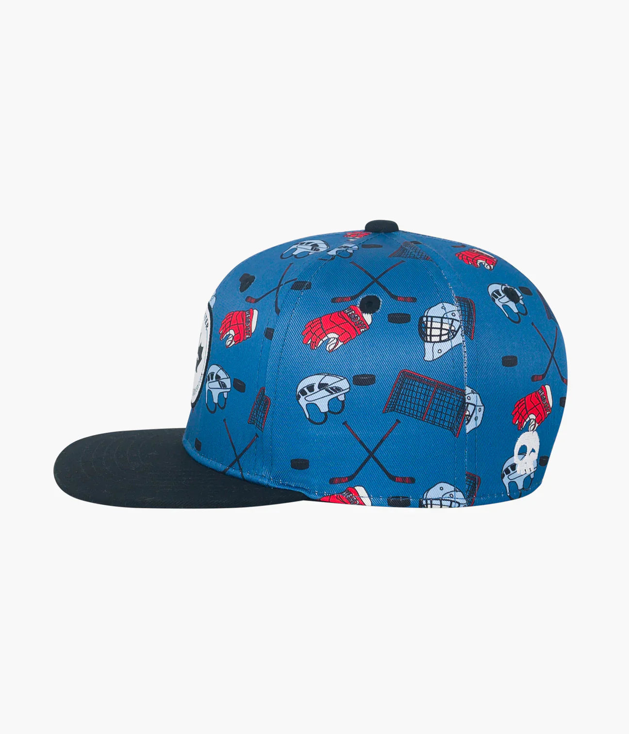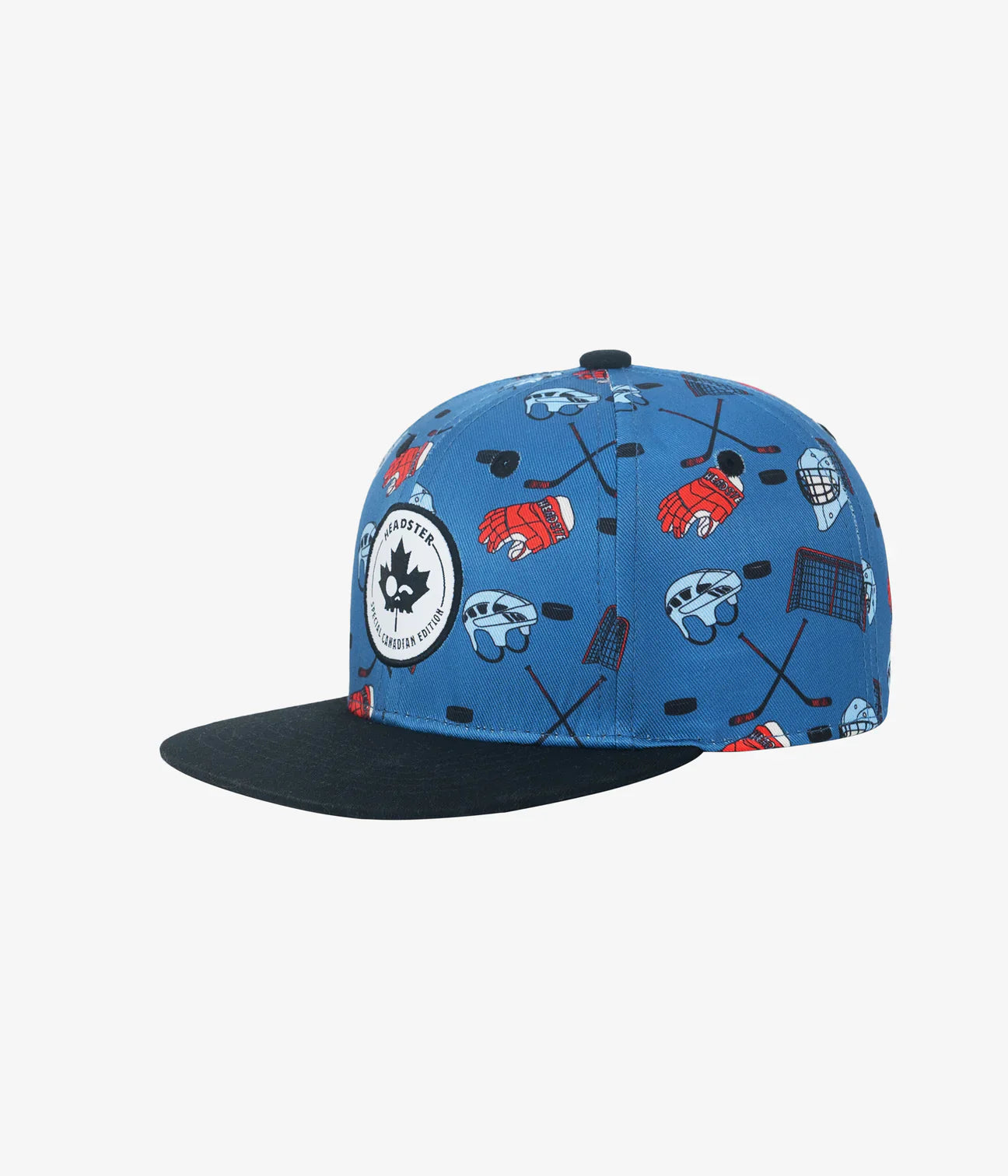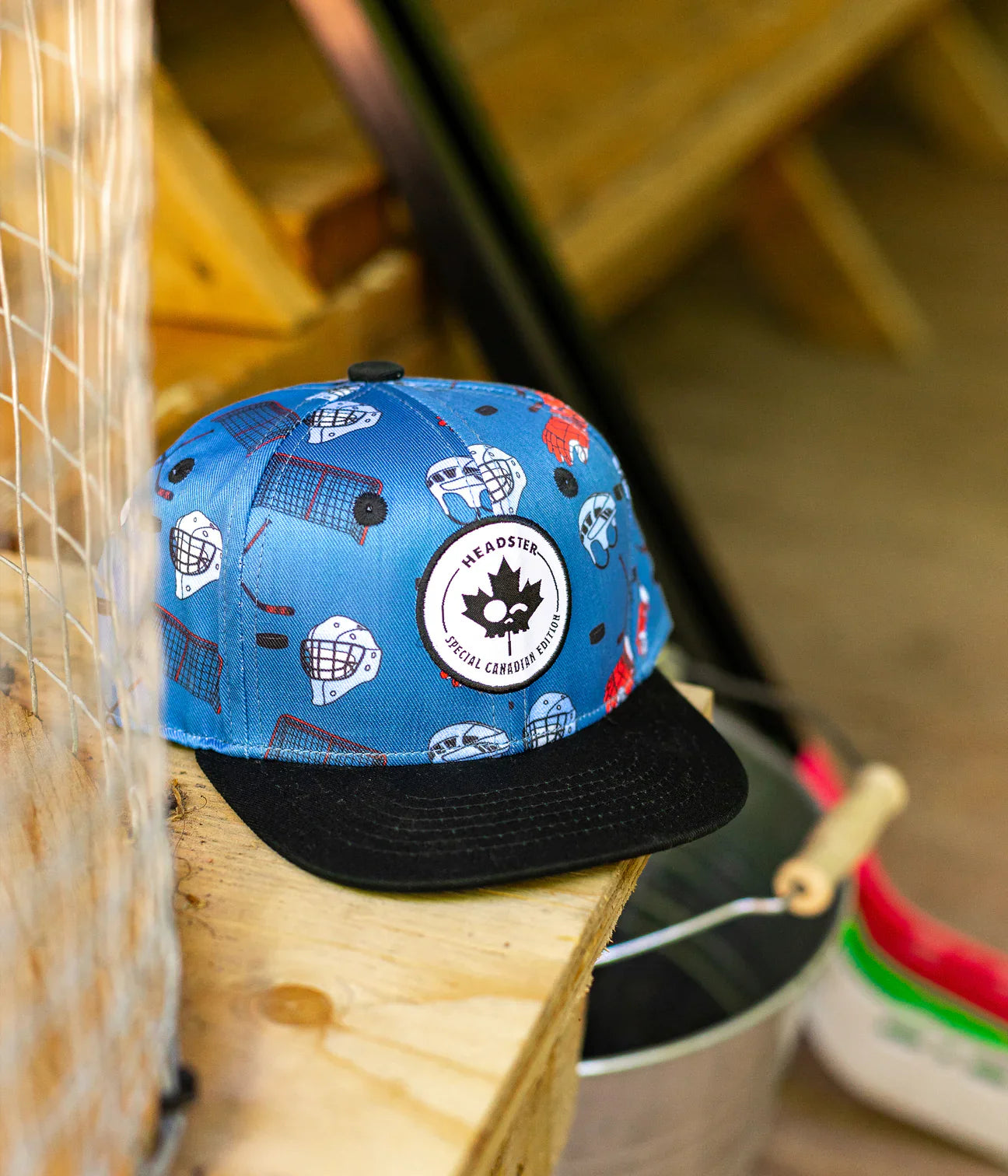 Representing the red leaf! Our national sport with a rad design that scores! Easily adjust the hat with a snapback closure that will grow with your child. Made with UPF50 fabric, it will keep your kid's head safe from the sun.