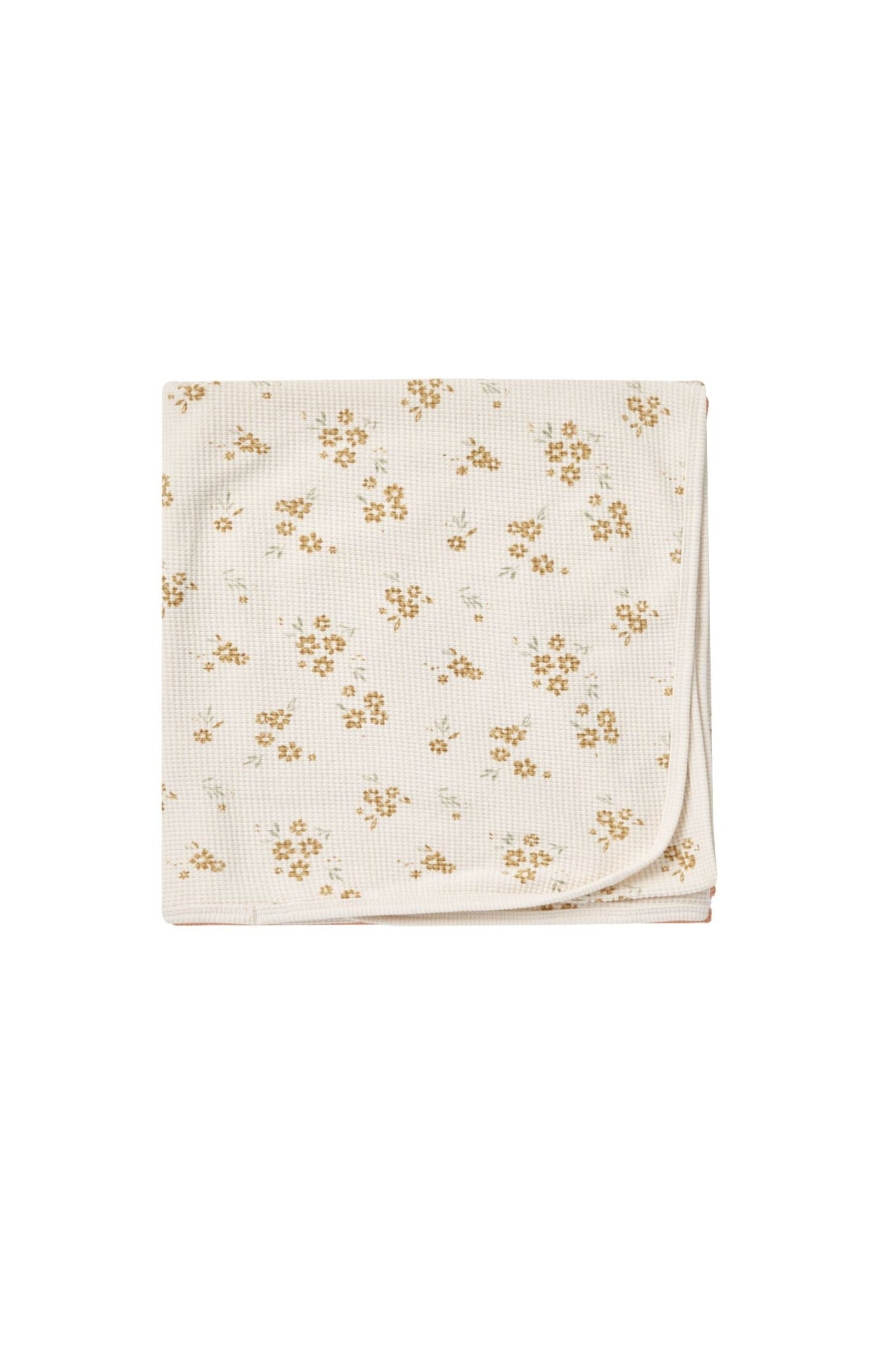 Waffle baby blanket. Perfect size for the stroller, car seat, or just at home! Featuring our 'honey flower' all-over pattern on natural.