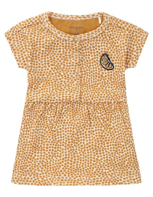 Surely this sunny dot print will instantly put you in a great mood? The Aligarh dress from the Noppies Baby collection features short sleeves, press studs on the body and pleats around the waistline. The press studs have ensured putting the dress on and taking it off again is nice and easy. This item of clothing won’t just allow you to make a sustainable choice for your child('s future), but also for our planet. This dress is made from GOTS-certified organic cotton. Not just super soft for your baby, but it also meets high international production and environmental standards. Our GOTS cotton will allow you to make the very best choice for yourself, your child and the world. From the environmentally-conscious way in which the cotton is produced, right through to the working conditions, everything meets the high standards. And it’s lovely and comfy too!