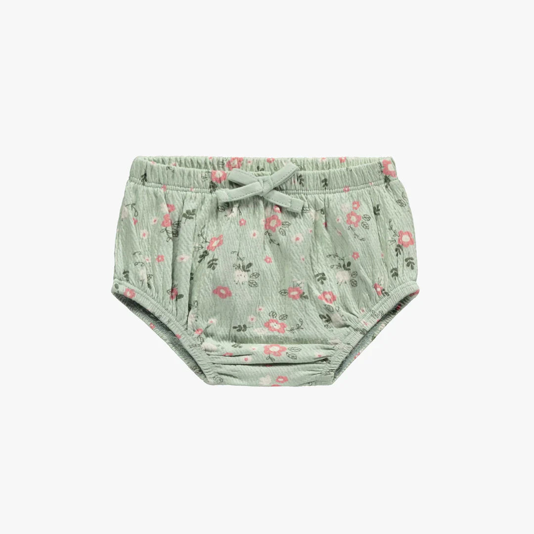 Accompanied by an elastic waist bloomer, decorated with a small bow, for a delicate and delicate set for the sensitive skins of baby.