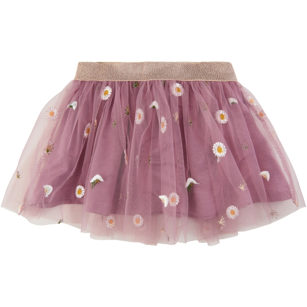 A stunning and utterly sweet tulle embroidered mini skirt. Gold elastic waistband. Lined