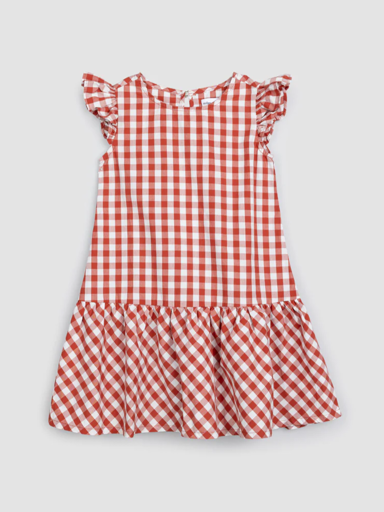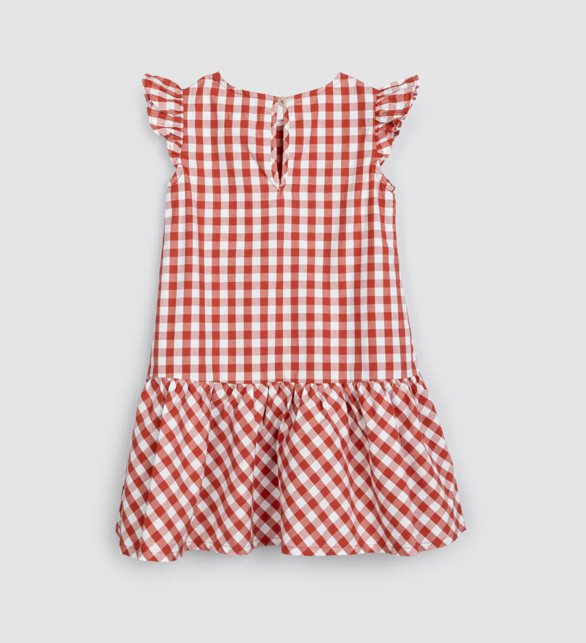 The Gingham Poplin Sleeveless Dress - Brick - BABY