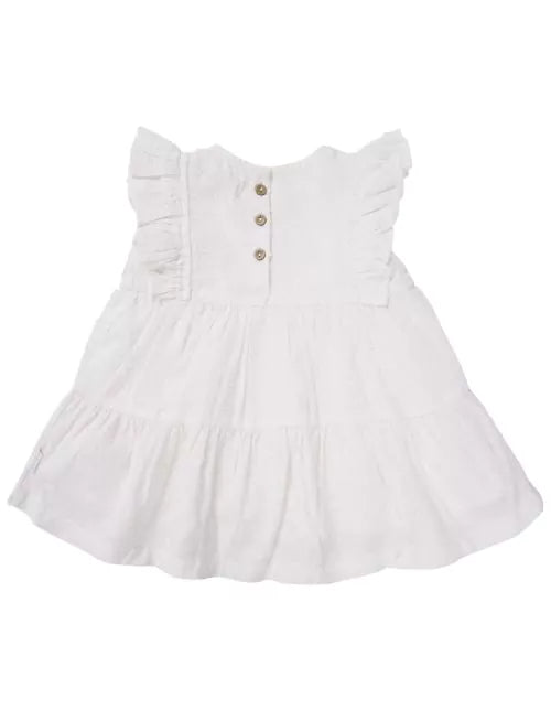 The New Hope dress features handy buttons on the back, which will make getting dressed and undressed a great deal easier. The lovely texture in the fabric and the ruffles on the shoulders have resulted in an extra cute look.