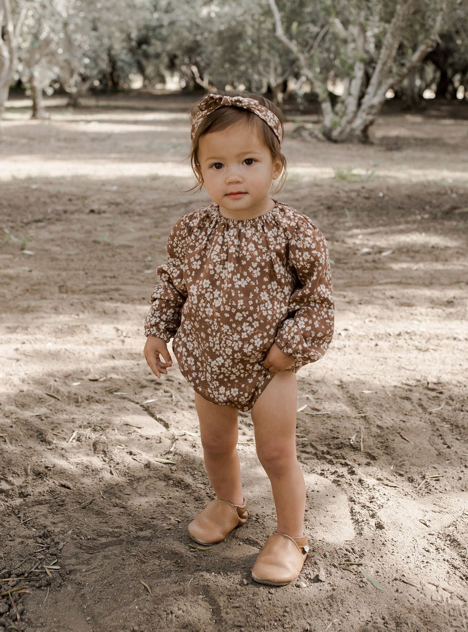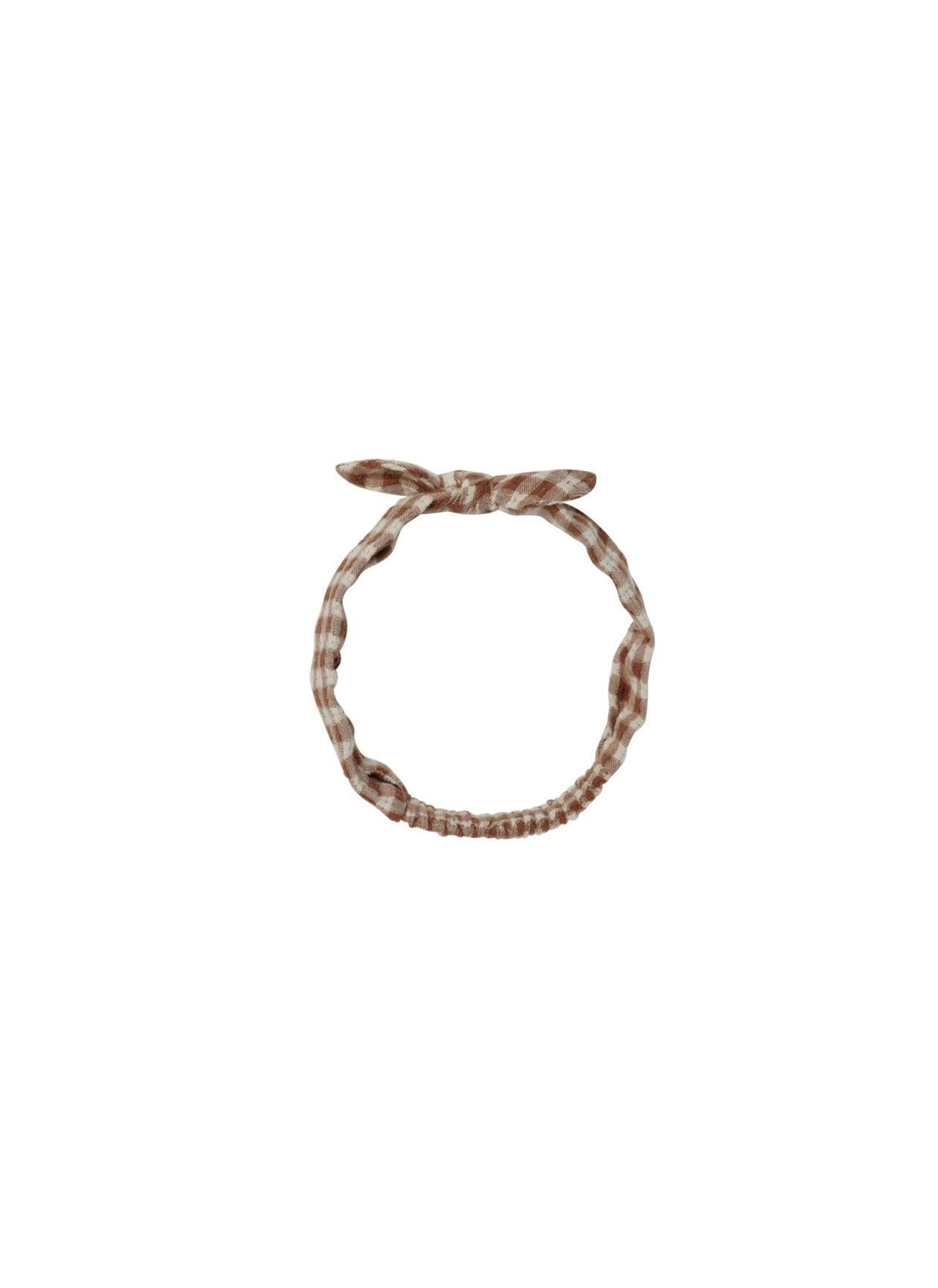 Baby headband set with a scrunchy elastic band for added comfort topped off with a sweet finished bow. Featuring our 'brown gingham' all over print or our 'harvest' all over print.