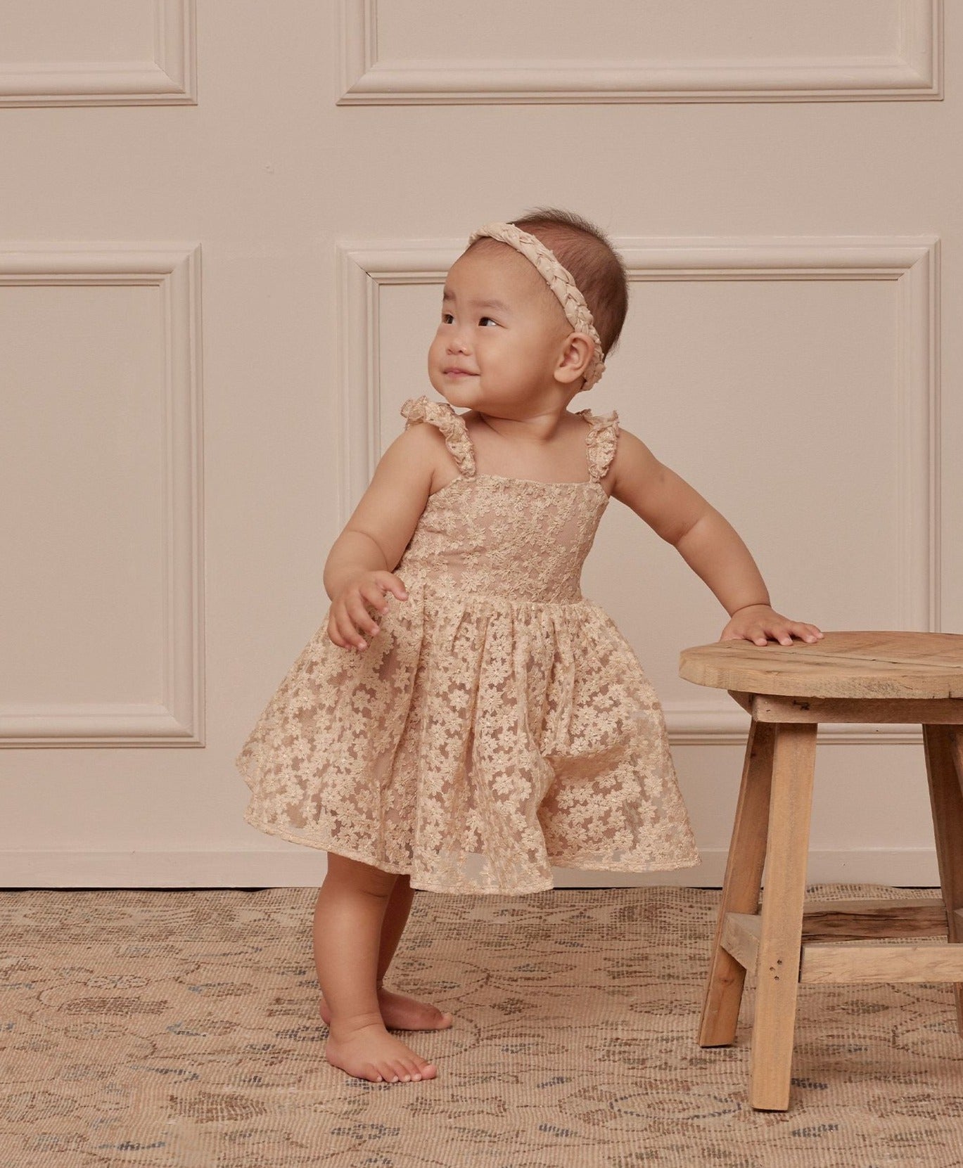 Outfit complete, with our Braided Headband in our 'soft floral' & 'cafe toile'.