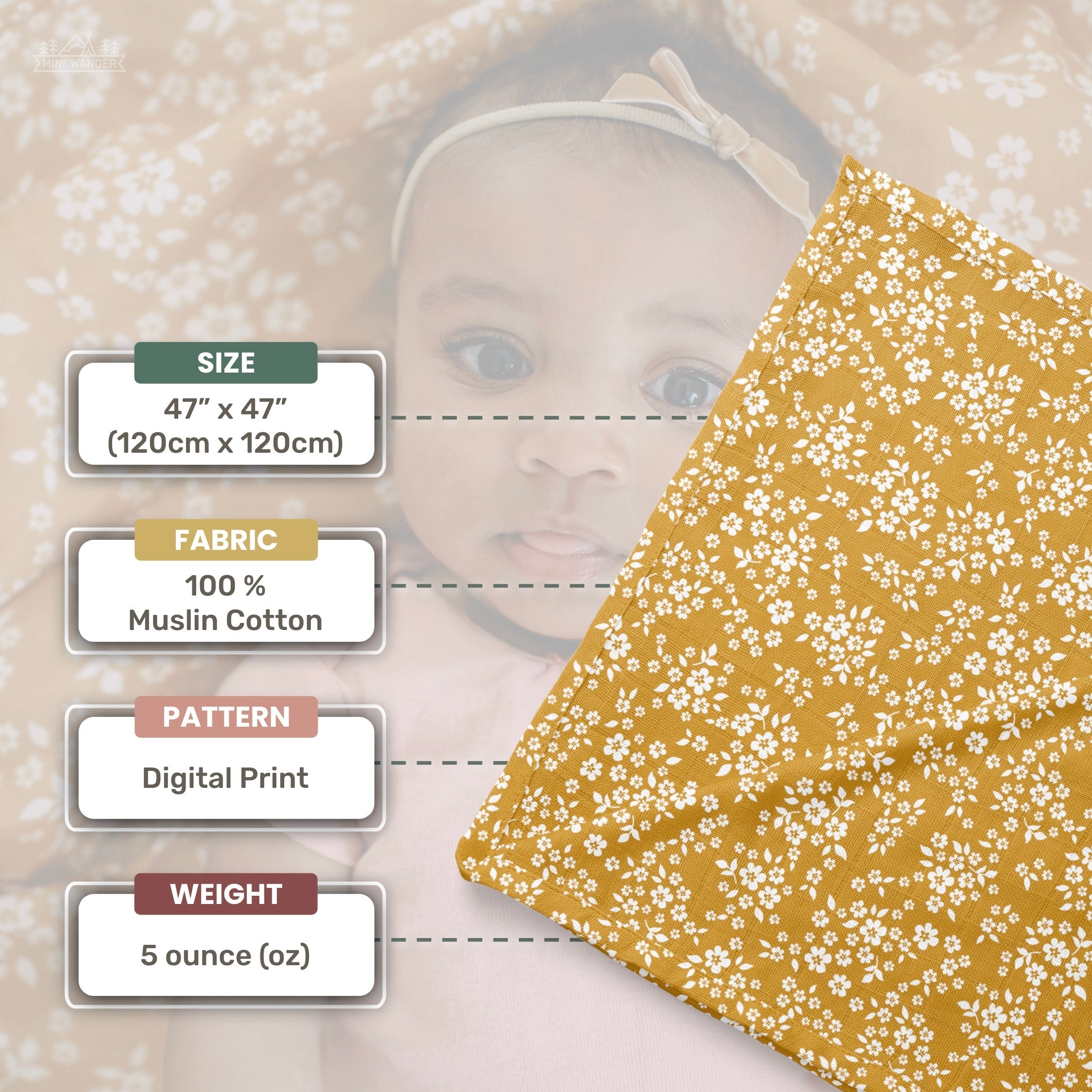 Swaddle your little one with this floral cotton muslin blanket. These lightweight cotton blankets feature a blend of fragrant leaves and flowers.
