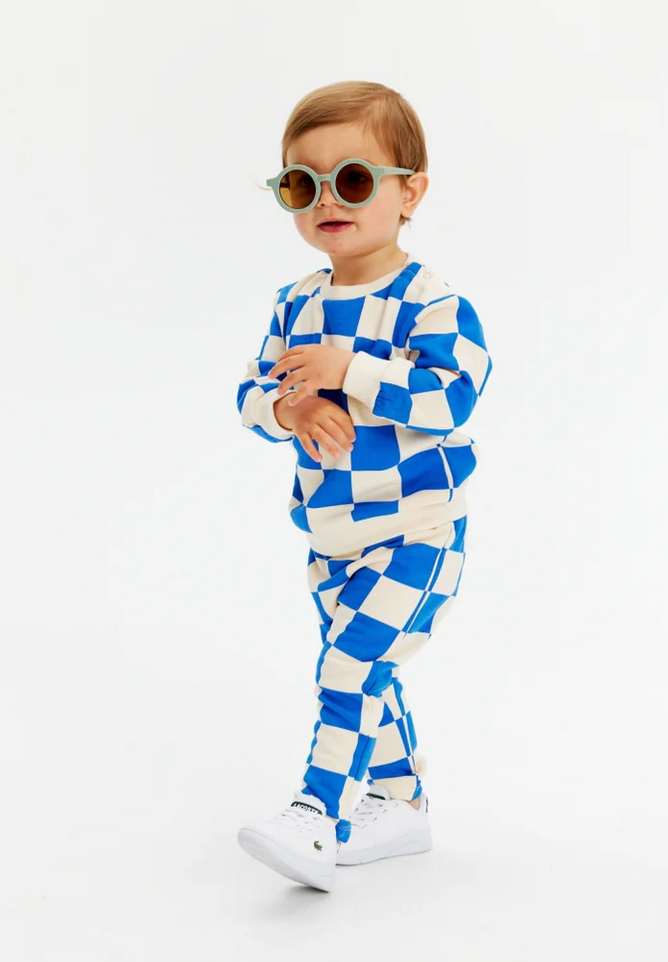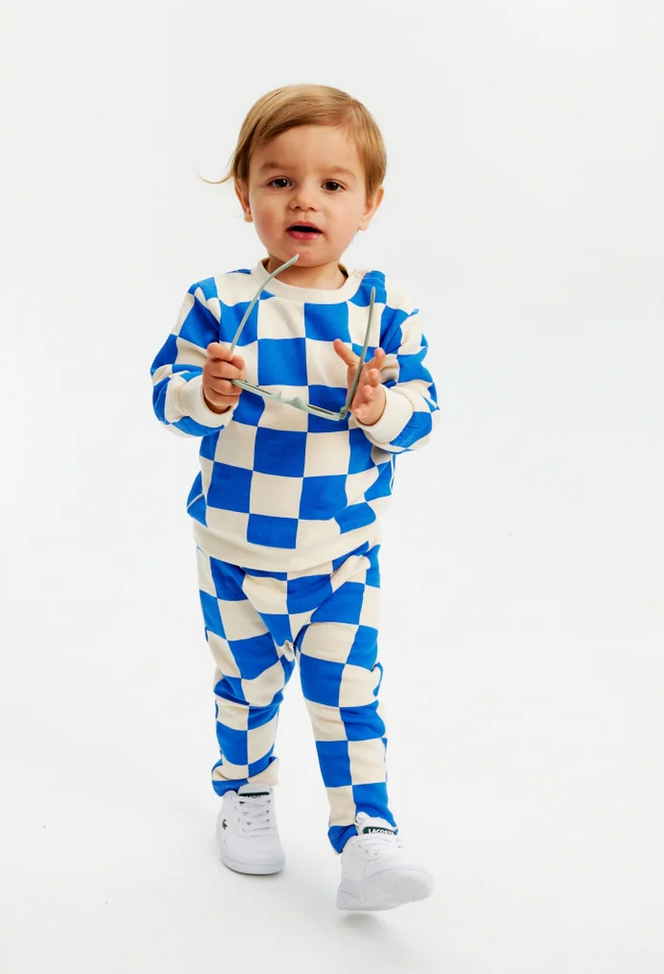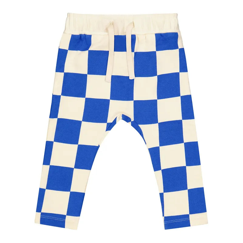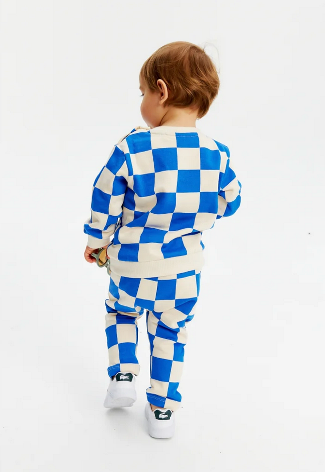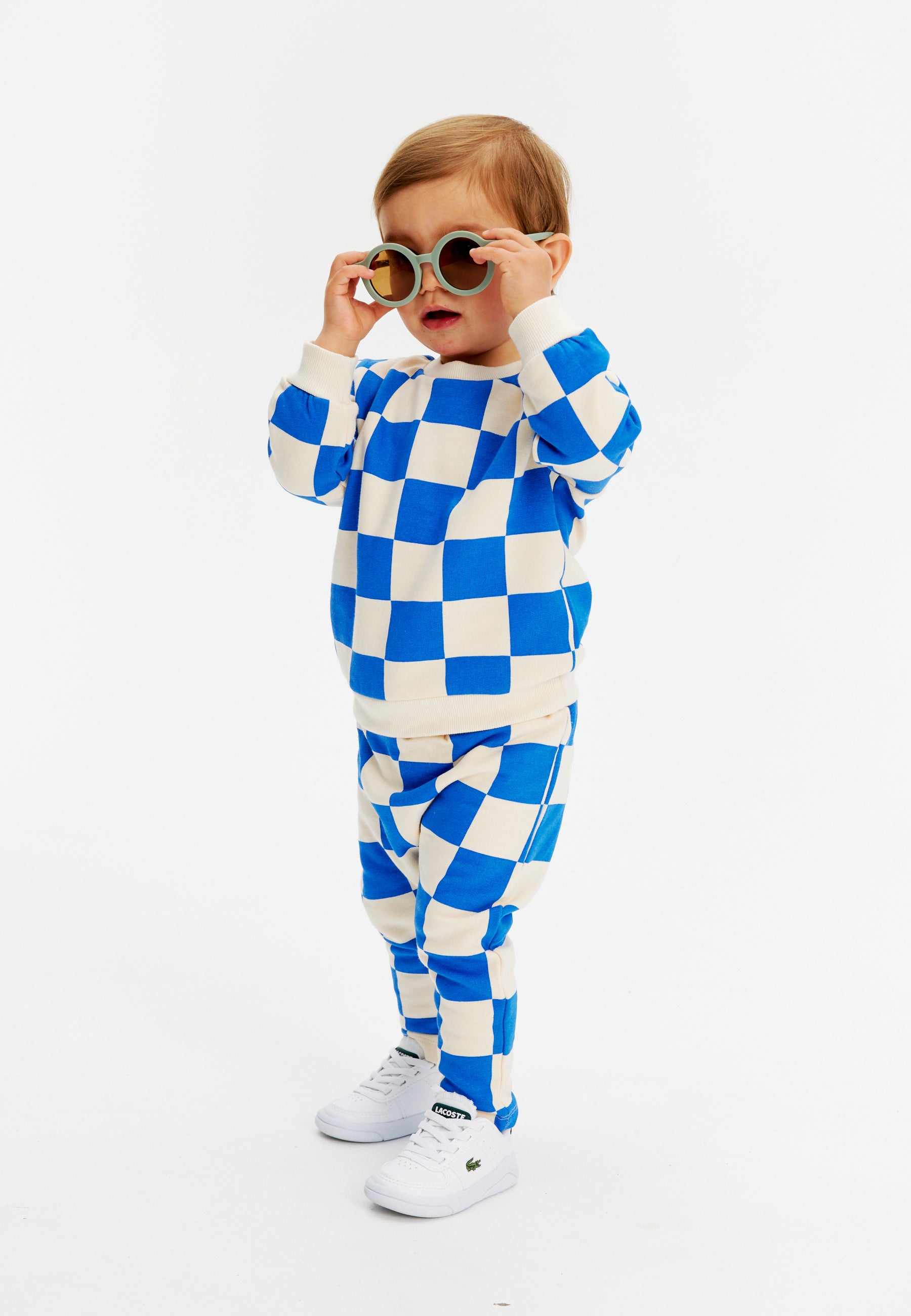 Checkered baby sweatpants in white and blue checks, which give them a cool racetrack-inspired look. These sweatpants from THE NEW siblings are made from organic cotton, which makes them soft, breathable, and gentle on the skin. Pair them with the matching Jibs sweatshirt for a cool and coordinated sweat set.