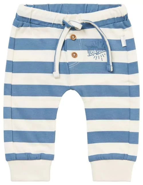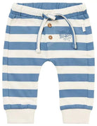 The Mauriceville trousers feature latitudinal stripes, decorative wooden buttons and a small print. The elasticated waist includes a tie ribbon, which has been made in such a way that it can’t be pulled out whilst tightening, handy! The stretch in the soft cotton has resulted in a great deal of comfort.