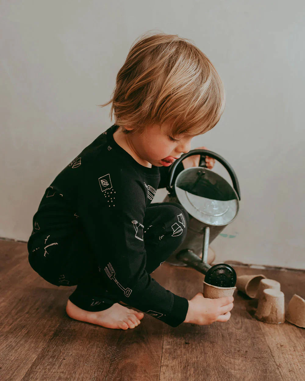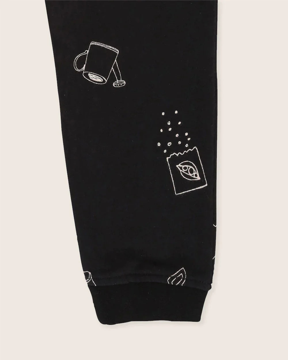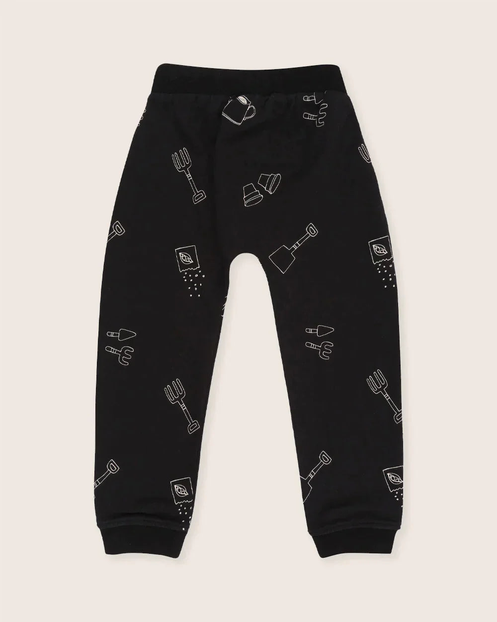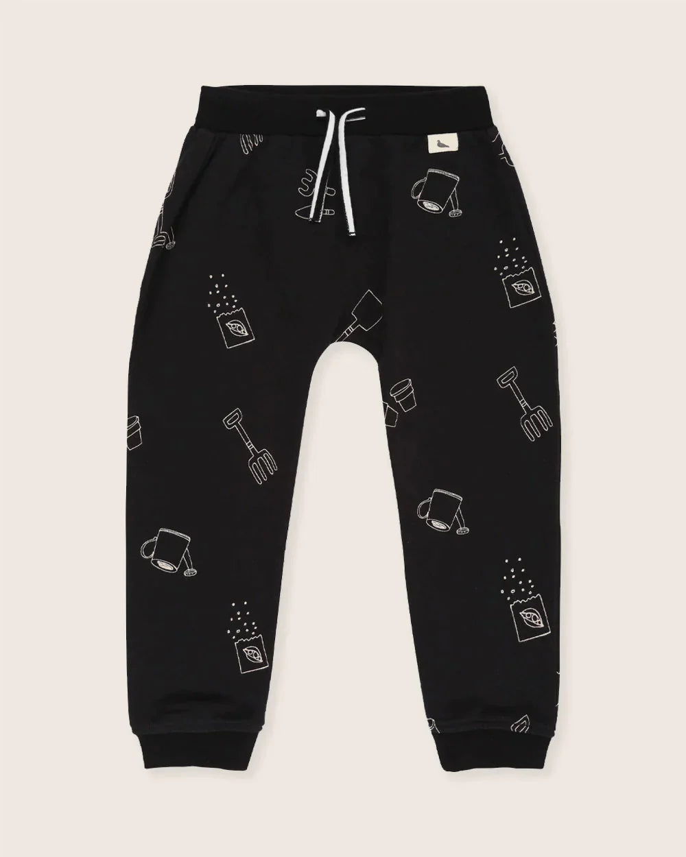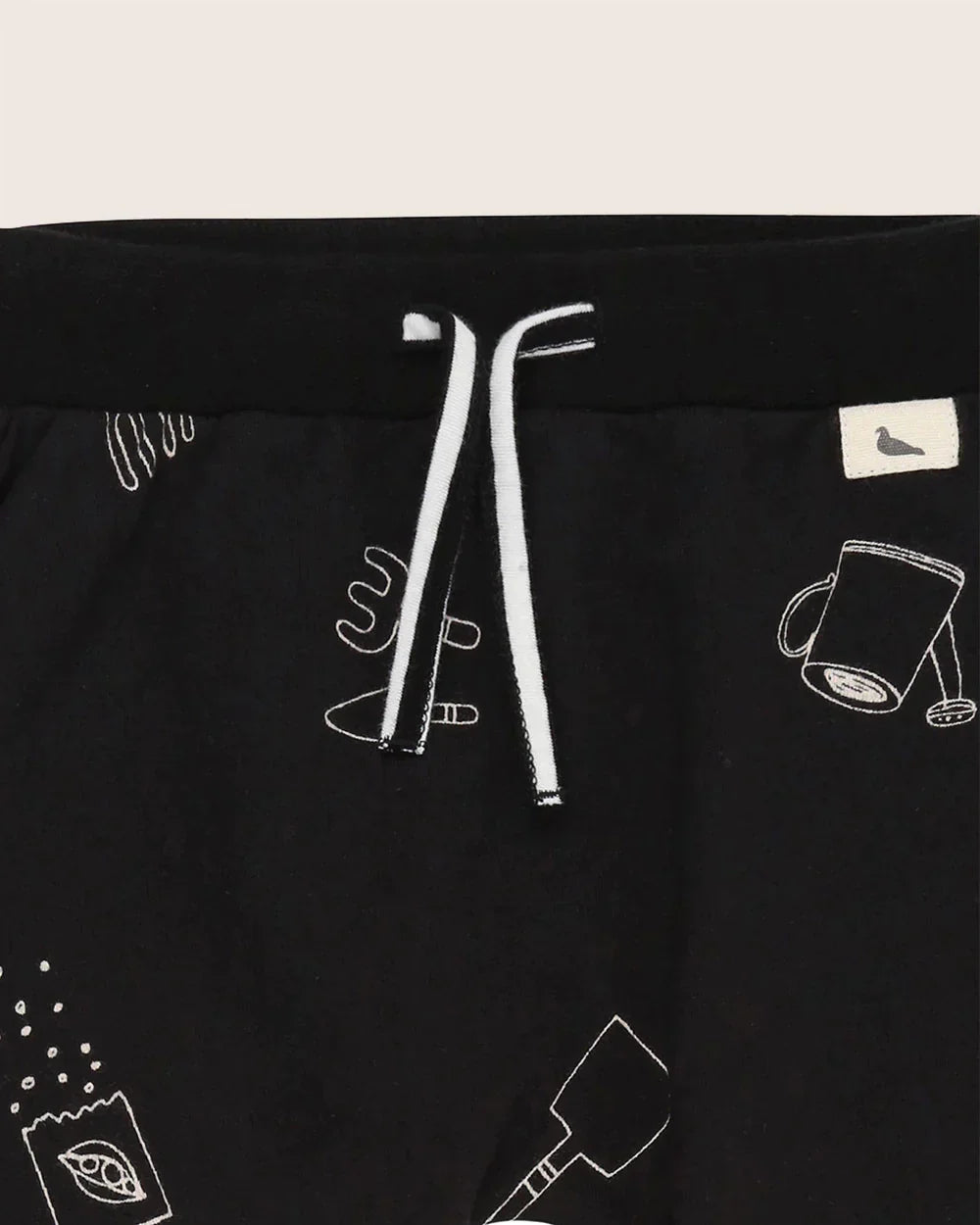 Designed for comfort and play, these timeless joggers are ideal for any weather wear. Made from the softest 100% GOTS organic cotton jersey fabric in the monochrome Sew and Grow Print, this contemporary wardrobe essential will keep your little one comfortable and relaxed all day. Style with any t-shirts or cosy sweatshirts for maximum comfort and on-trend style.