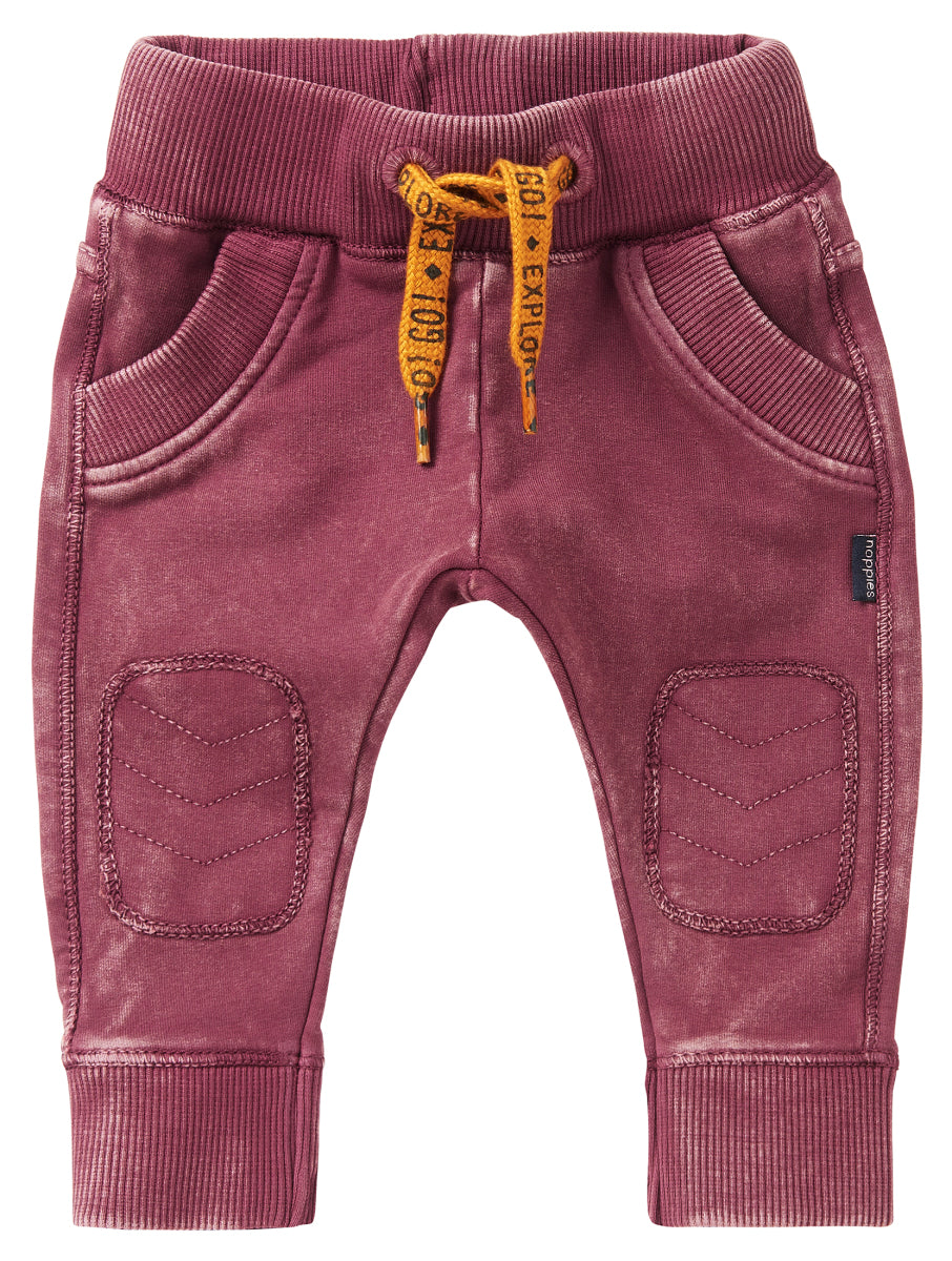 Do you like to dress your little man in a cool little outfit? Then these joggers are absolutely made for him. The joggers boast a super cool look. Not just because of the special washed effect, but also because of all those cool details. The joggers feature a ribbed elasticated waistband with a yellow tie ribbon and ribbed pockets and cuffs. There are some stitched patches on the knees, which beautifully finish off these joggers. The joggers are made from cotton with a touch of stretch. Lovely and comfy for your little one.