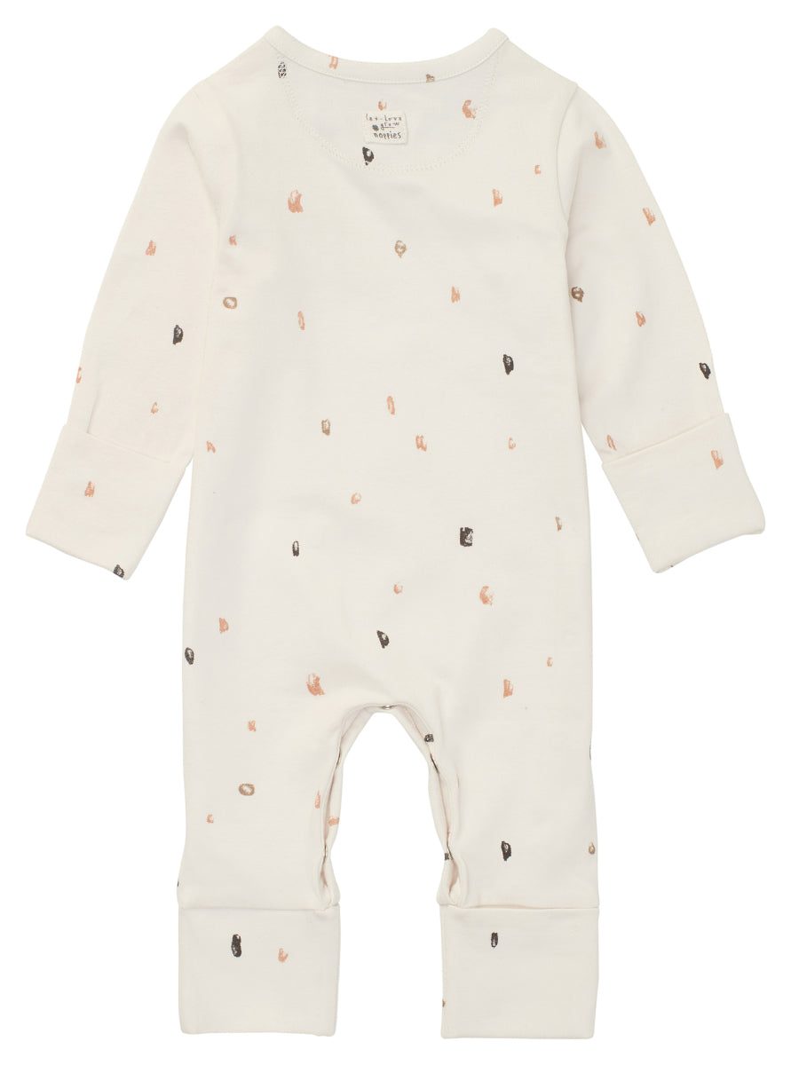 This unisex playsuit has everything you could possibly ask for. The fabric is lovely and elastic and the playsuit features press studs which will make getting dressed, undressed and a nappy change nice and easy. The foldable cuffs have resulted in extra comfort for your little one, as they create mittens and socks which stop your baby from scratching him or herself. As well as creating a warm and cosy feel!