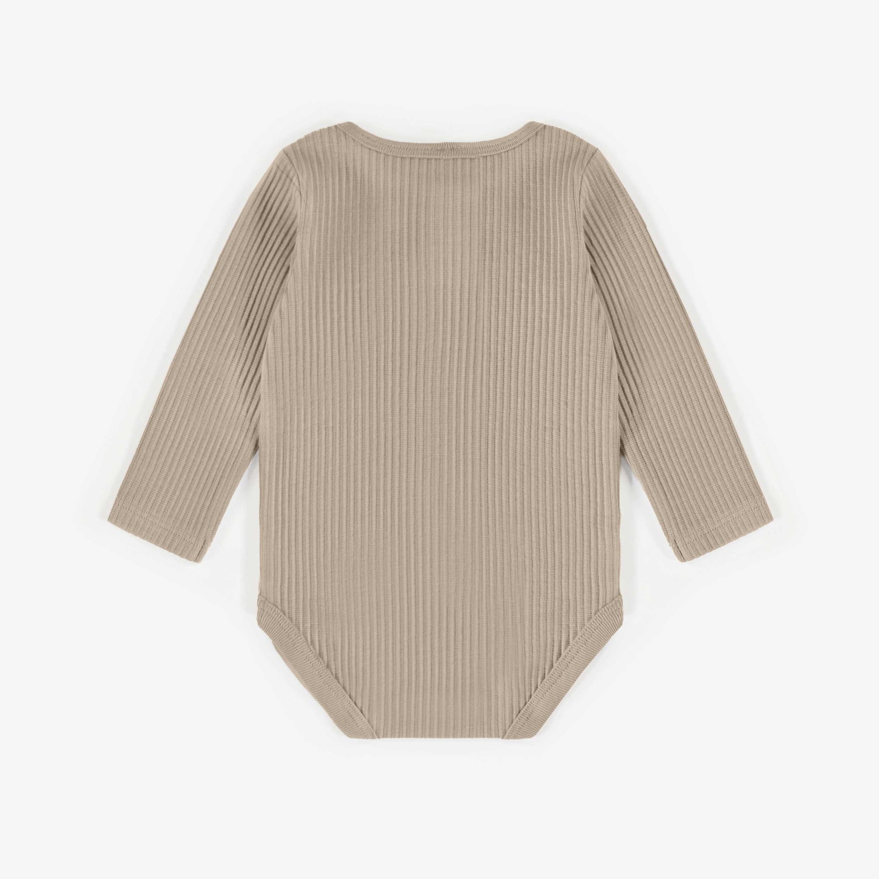 A simple, classic bodysuit made from a soft, stretchy ribbed organic cotton knit.