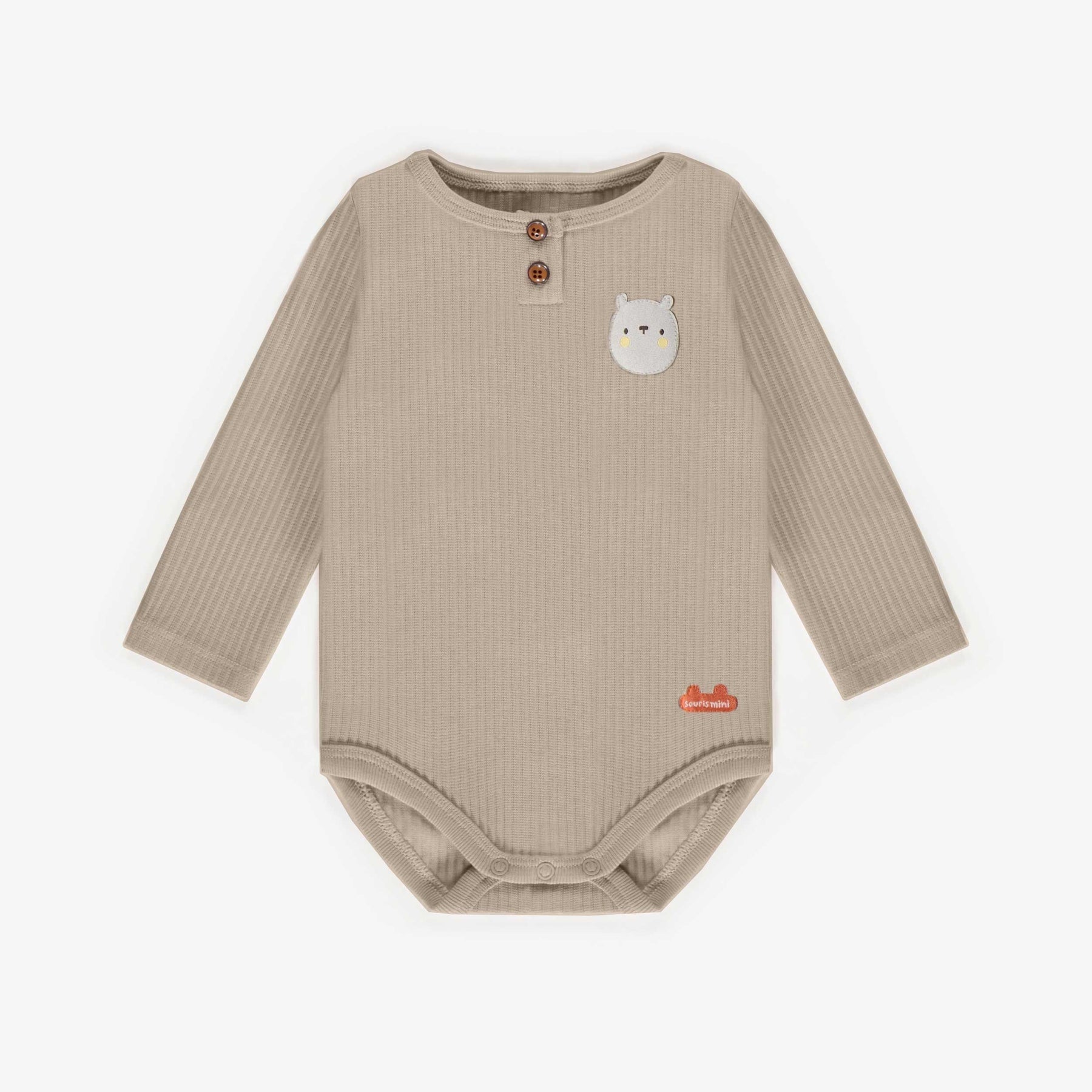 Machine wash cold inside out with similar colours on gentle cycle. Do not iron on trims. Tumble dry low.The Bear Henley Collar Bodysuit - BABY