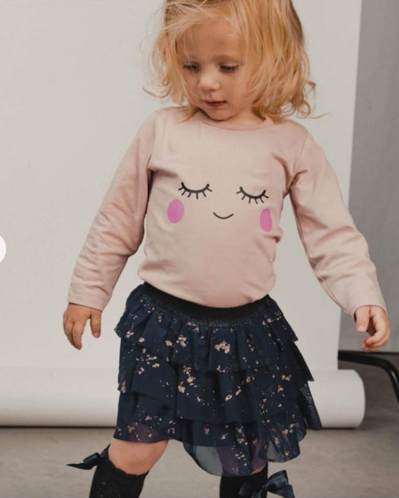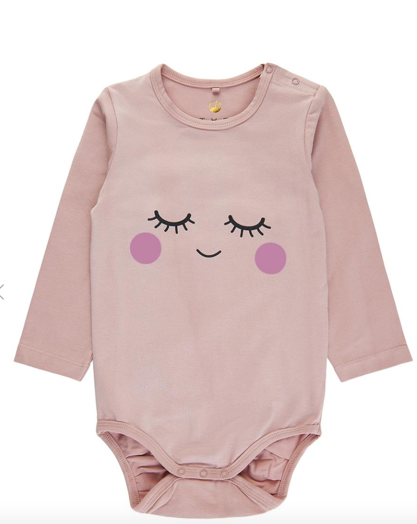 Long-sleeved bodysuit with a cute print on the front. Made from soft organic cotton. Easy snap buttons on one shoulder and between the legs.