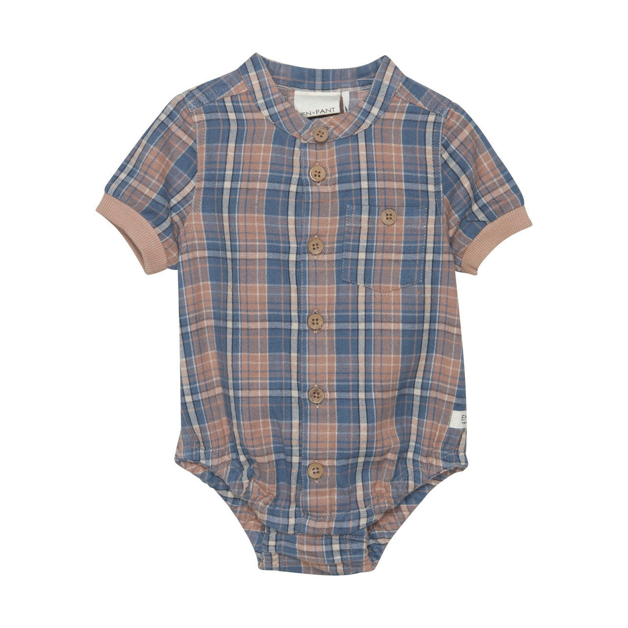 This short sleeve plaid onesie has classic, narrow ribbed edges and a unique mock-neck collar with the cutest little buttons all the way down the front. It's the preppy look we all know and love but made for the smallest of littles.