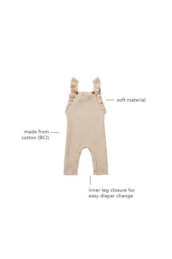 The Chantilly Dungarees from the Noppies Baby collection have a cute knitted look & feel, yet the soft cotton makes them wonderfully lightweight. The braces have a ruffle trim and are adjustable. The inside leg press studs will make changing your baby's clothes and nappies much easier. The stretch in the fabric gives your tiny tot plenty of room to move. What a great outfit!