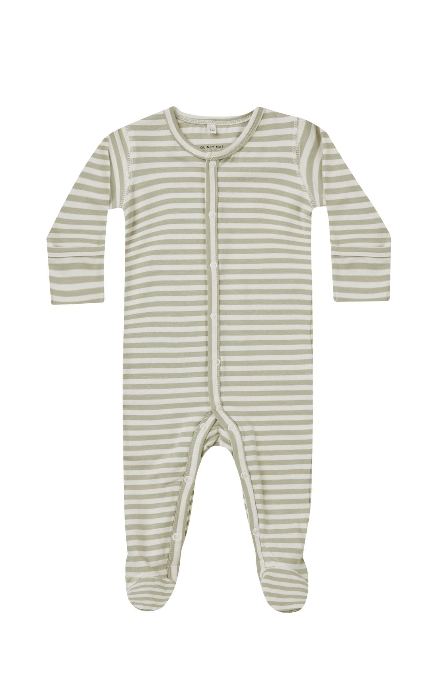 The Full Snap Footie by Quincy Mae - Sage Stripe - BABY