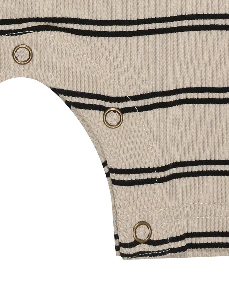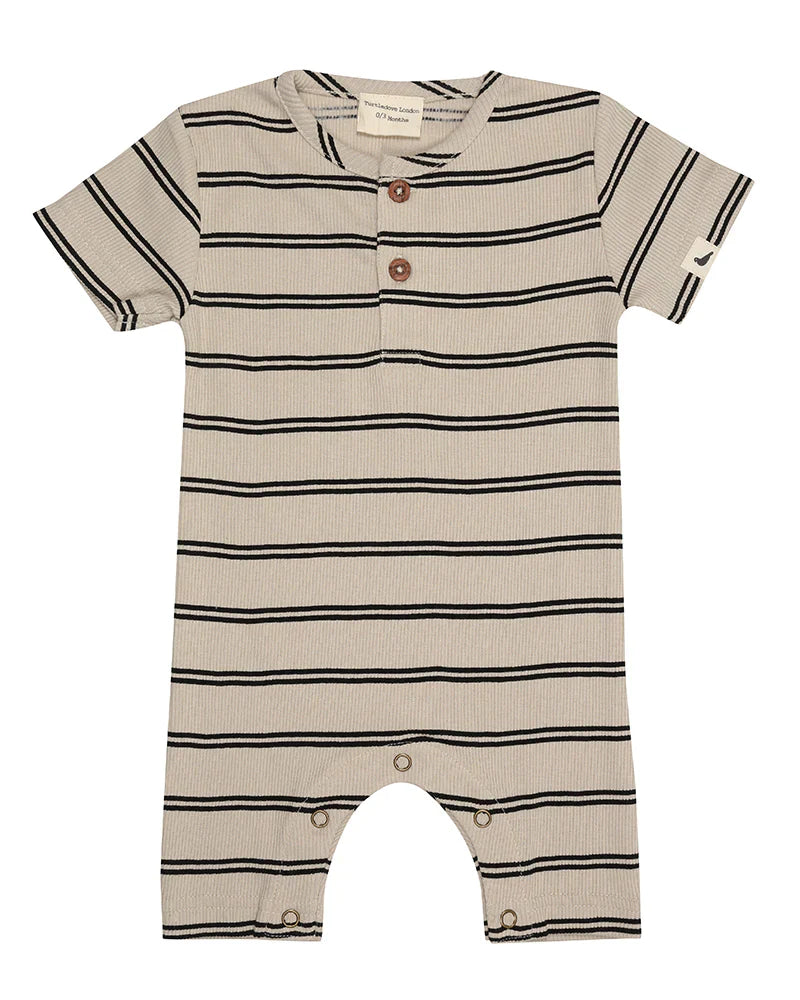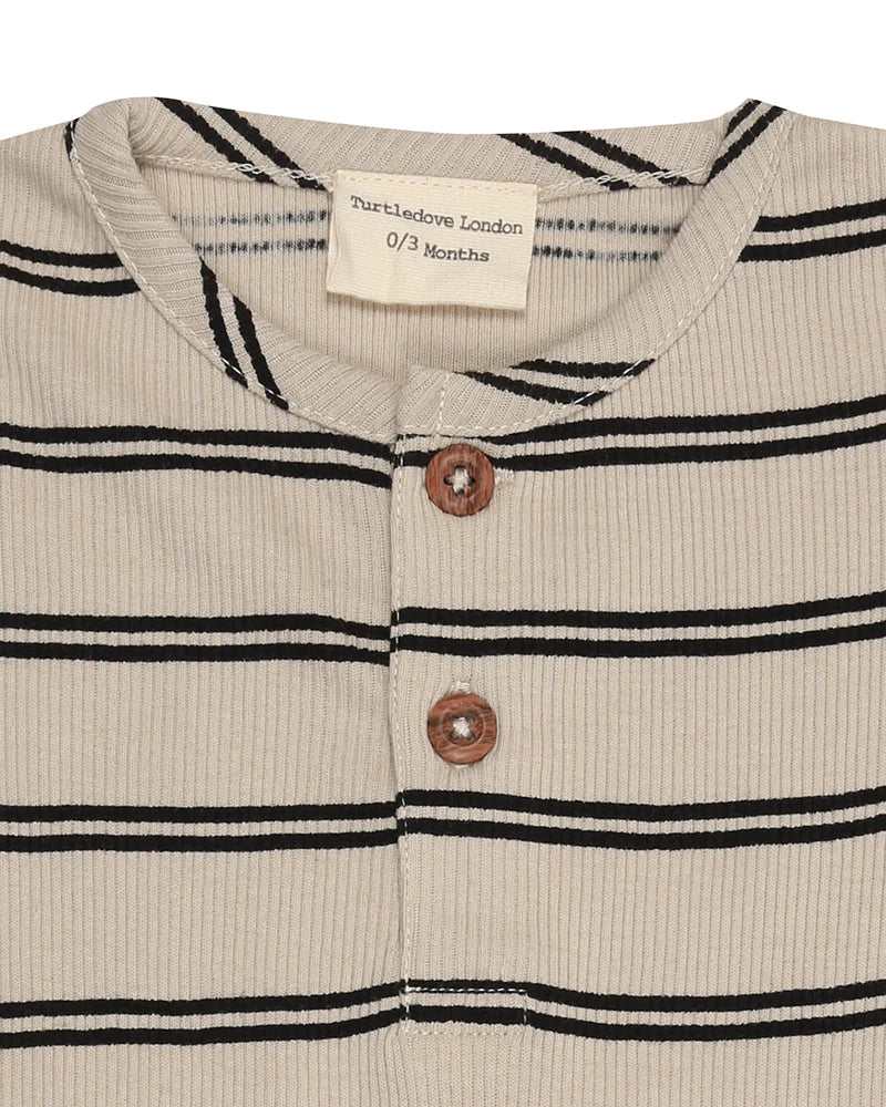 With a pumice base colour, this piece features our retro stripe pattern. A contemporary classic for both baby boys and girls.