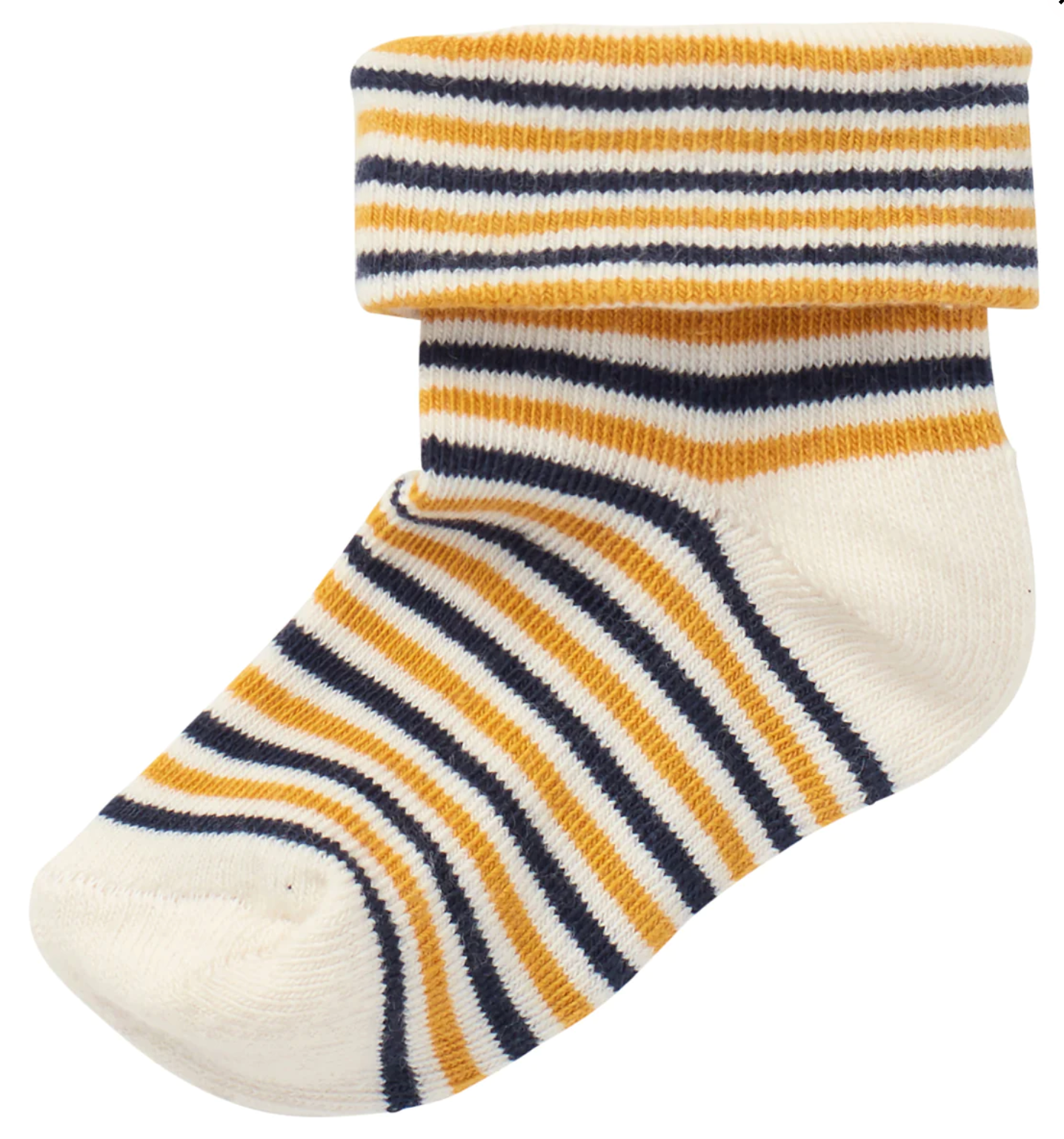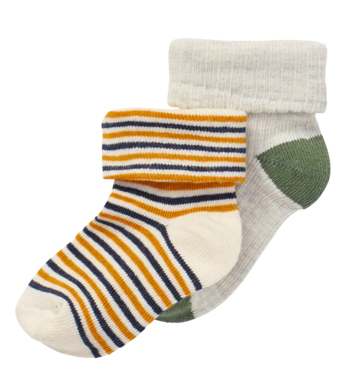 The Noppies baby socks are well known for staying firmly in place on your little one’s feet. The stretchy ribbed top will make sure your little sweetheart’s feet stay lovely and warm. The Hirakata socks consist of a striped and a plain pair.