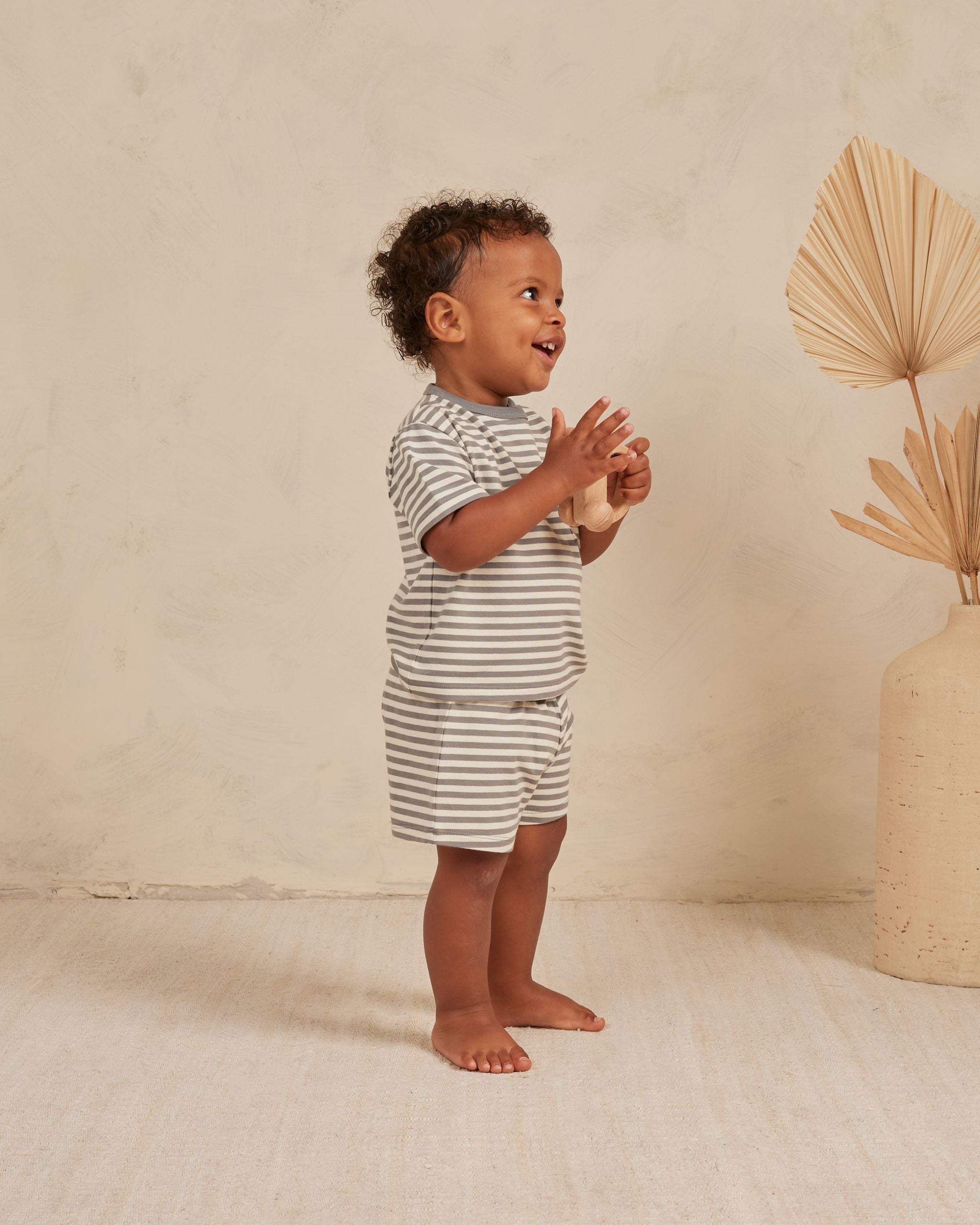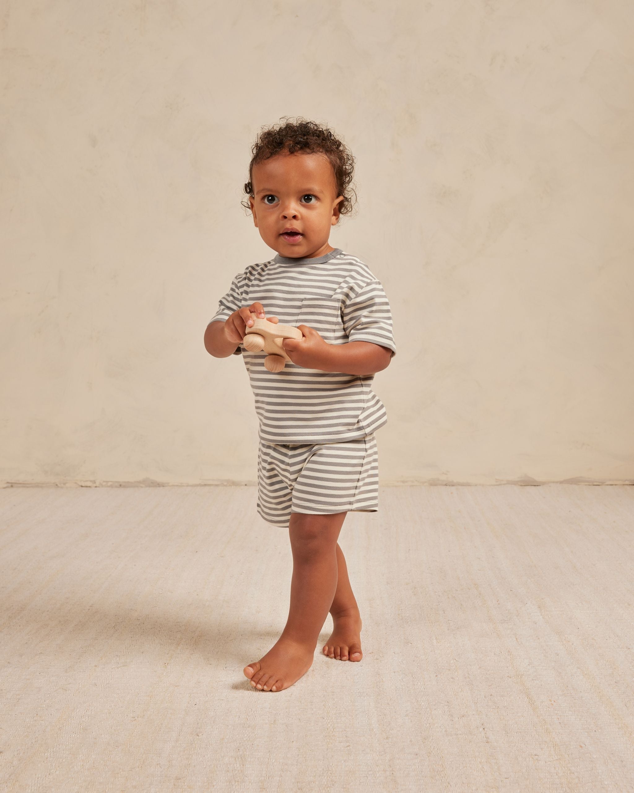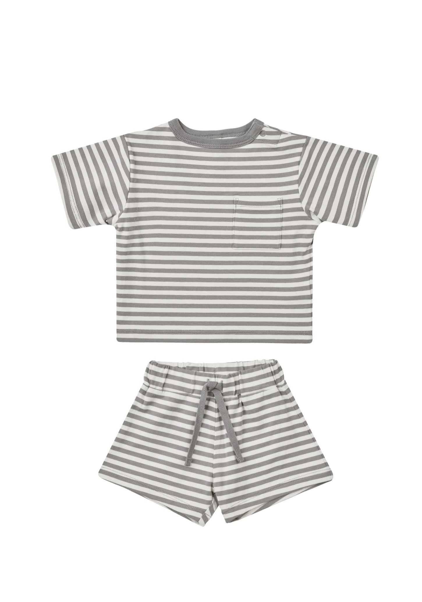 The Boxy Pocket Tee + Short SET by Quincy Mae - Lagoon Stripe - BABY