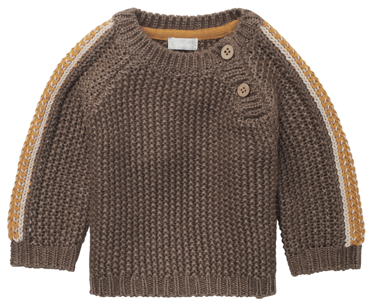 Your son will boast a gorgeous wintry look in this sweater from the Noppies Baby collection. Deliciously warm and comfy! The Rtina sweater features handy wooden buttons, which will make getting dressed and undressed just that little bit easier. There are some stripes down the length of the sleeves in contrasting colours.