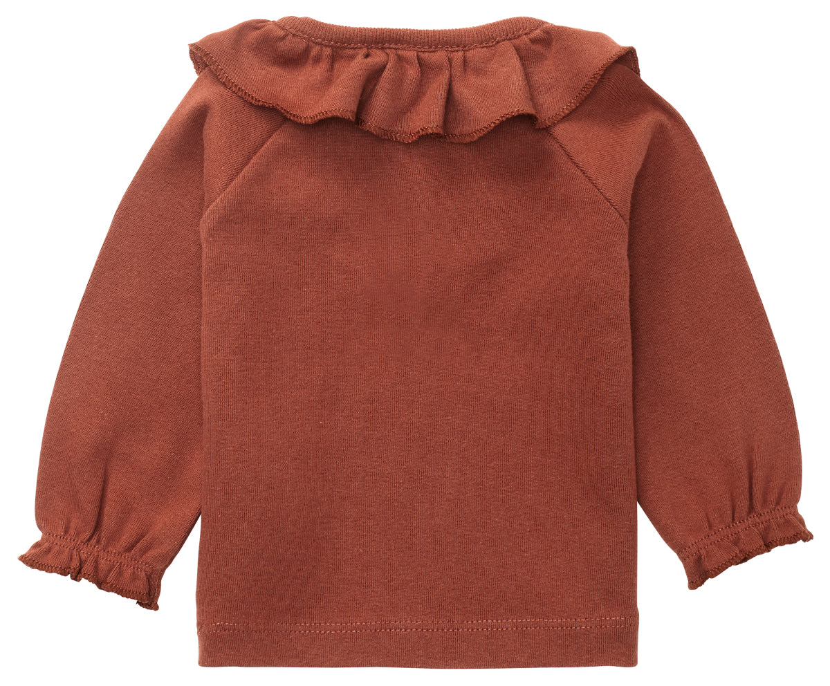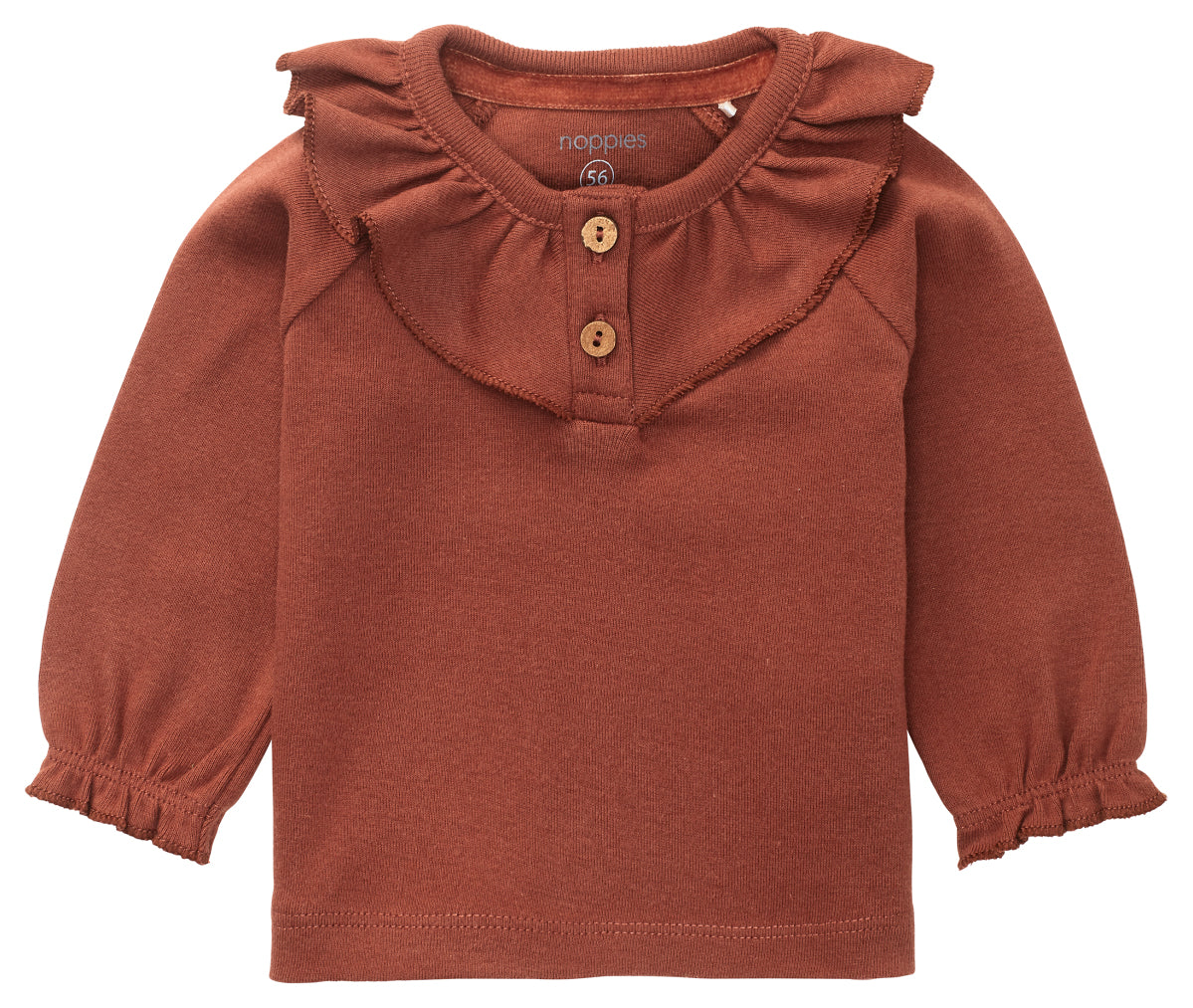 Deliciously soft, elasticated and comfortable ... And it looks incredibly cutewith those ruffle details too! The Selma shirt features handy wooden buttons, which will make getting dressed and undressed a great deal easier. The sleeve cuffs are elasticated, which has created a lovely ruffled edge.