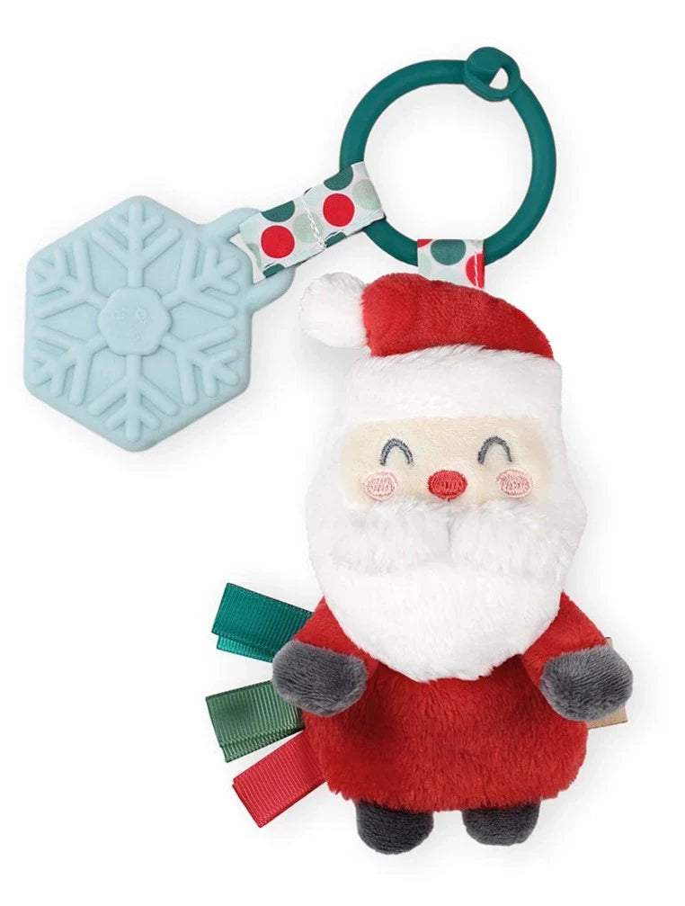 Our Holiday Santa Itzy Pal™ joins your little one as the most playful (& cutest!) pal on the block! Includes soft plush character, gentle silicone teether to soothe sore gums. Engaging crinkle sounds and colorful textured ribbons for busy hands.
