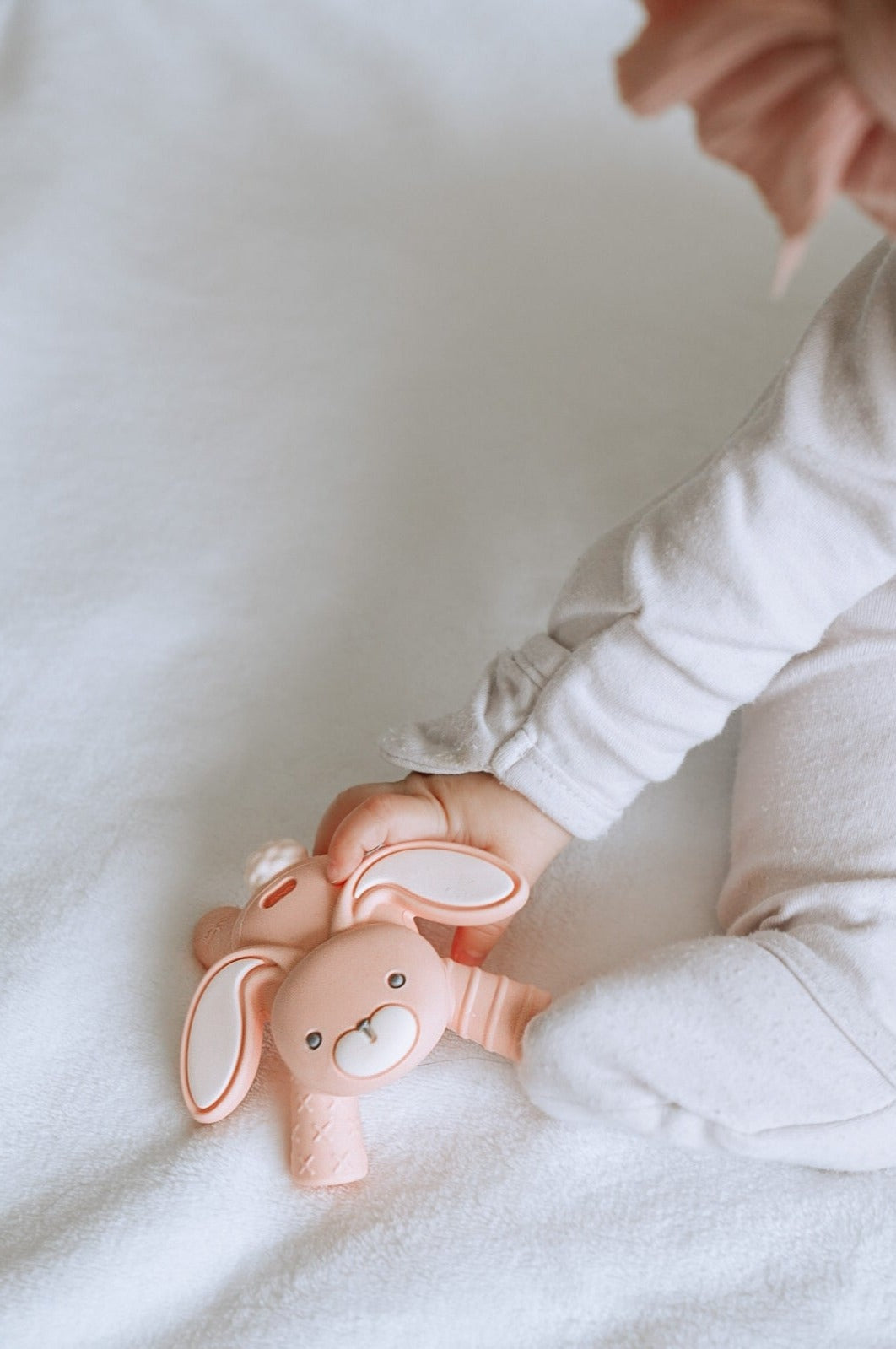 The textured hollow tubes collapse and flex reaching both front teeth and back molars. Ana the Bunny is sure to entertain while providing comfort and relief for your little one. Creative and familiar animal shape to entertain and engage baby.