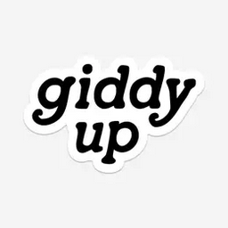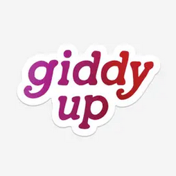 Sticker reads "giddy up" in black or magenta gradient on a white background. Smaller size means these are easily applied to phone cases or water bottles.