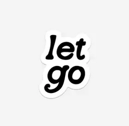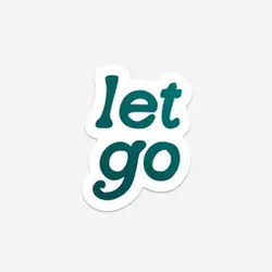 Sticker reads "let go" in black or emerald green gradient on a white background. Smaller size means these are easily applied to phone cases or water bottles.