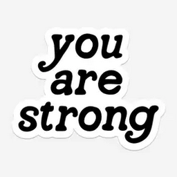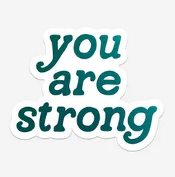 Sticker reads "you are strong" in black or emerald green gradient on a white background. Smaller size means these are easily applied to phone cases or water bottles.