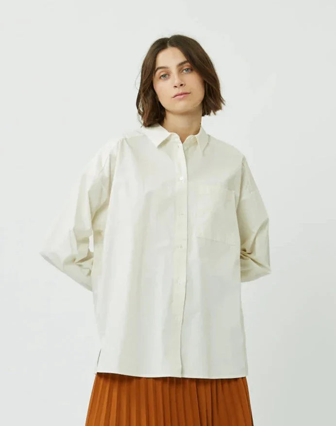 The Luccalis is a classic long-sleeved shirt crafted from 100% soft, organic cotton. The shirt has a loose fit and features slit along the sides, a chest pocket, dropped shoulders and cuffs.